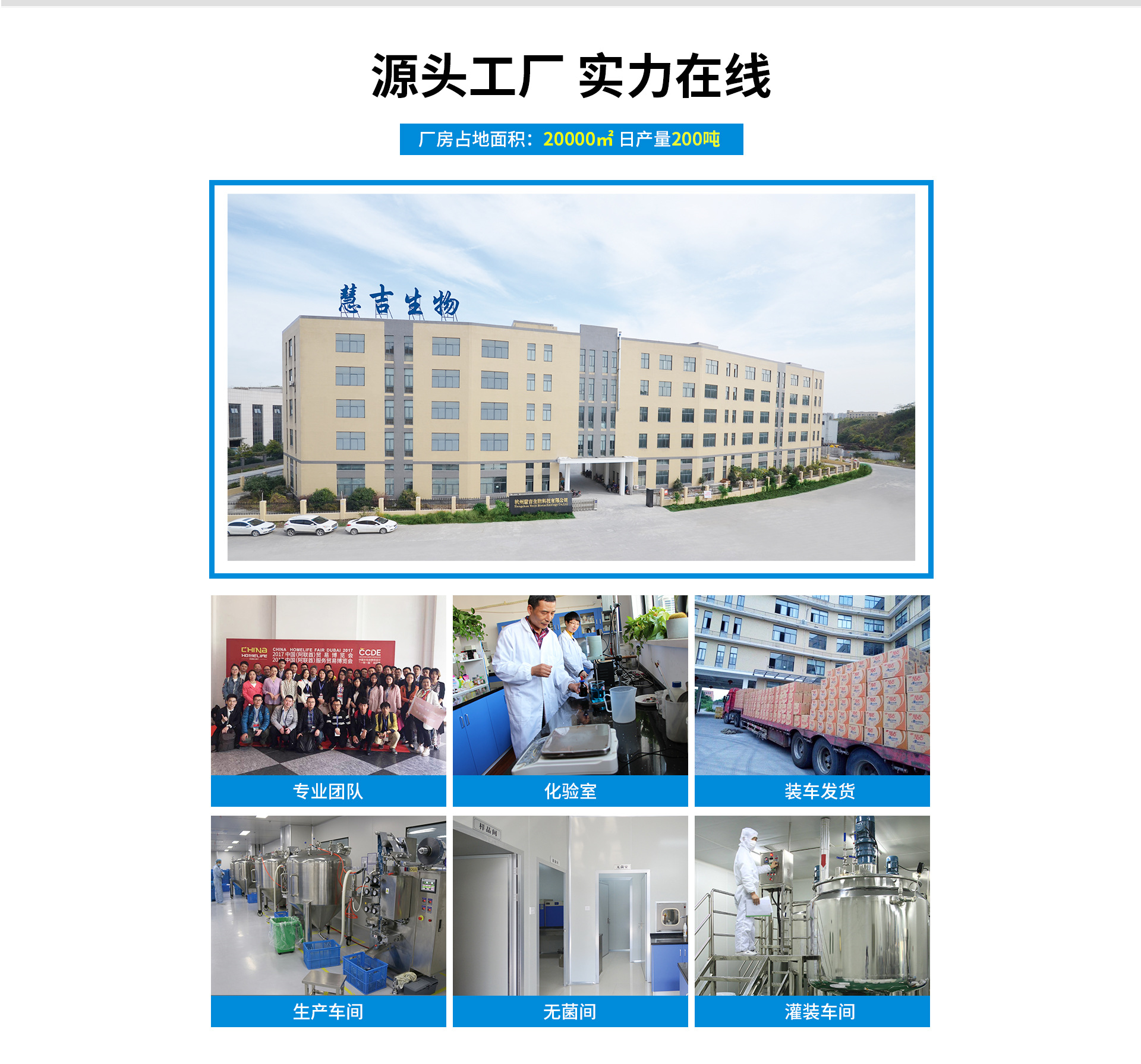 杭州慧吉生物科技有限公司創辦于2000年6月,是一家專業生產家庭衛生、日用洗澤、醫用消毒、化妝品等 系列產品的研發、加工、銷售及配送綜合一體的民營企業。公司坐落于杭州市余杭區仁和先進制造業基地,占 地面積約3萬多平方米。擁有全自動高端設備生產線,檢驗設備齊全,配備有規范的理化檢驗和微生物檢驗室, 不僅為公司業務提供堅實基礎,也大大提升行業綜合競爭實力。 公司從創立至今已發展成為杭州地區規模較大的家居日用品生產基地,不僅有雄厚的資金實力、強大的生 產能力,還擁有一支高素質,充滿生機活力的專業化團隊,核心技術人員多名,90%擁有本科以上學歷。 慧吉生物科技有限公司是一家成長型企業,公司堅持以“質量在手中,顧客在心中”的管理方針與服務理念, 熱忱歡迎社會各界朋友和企業加盟與投資合作!