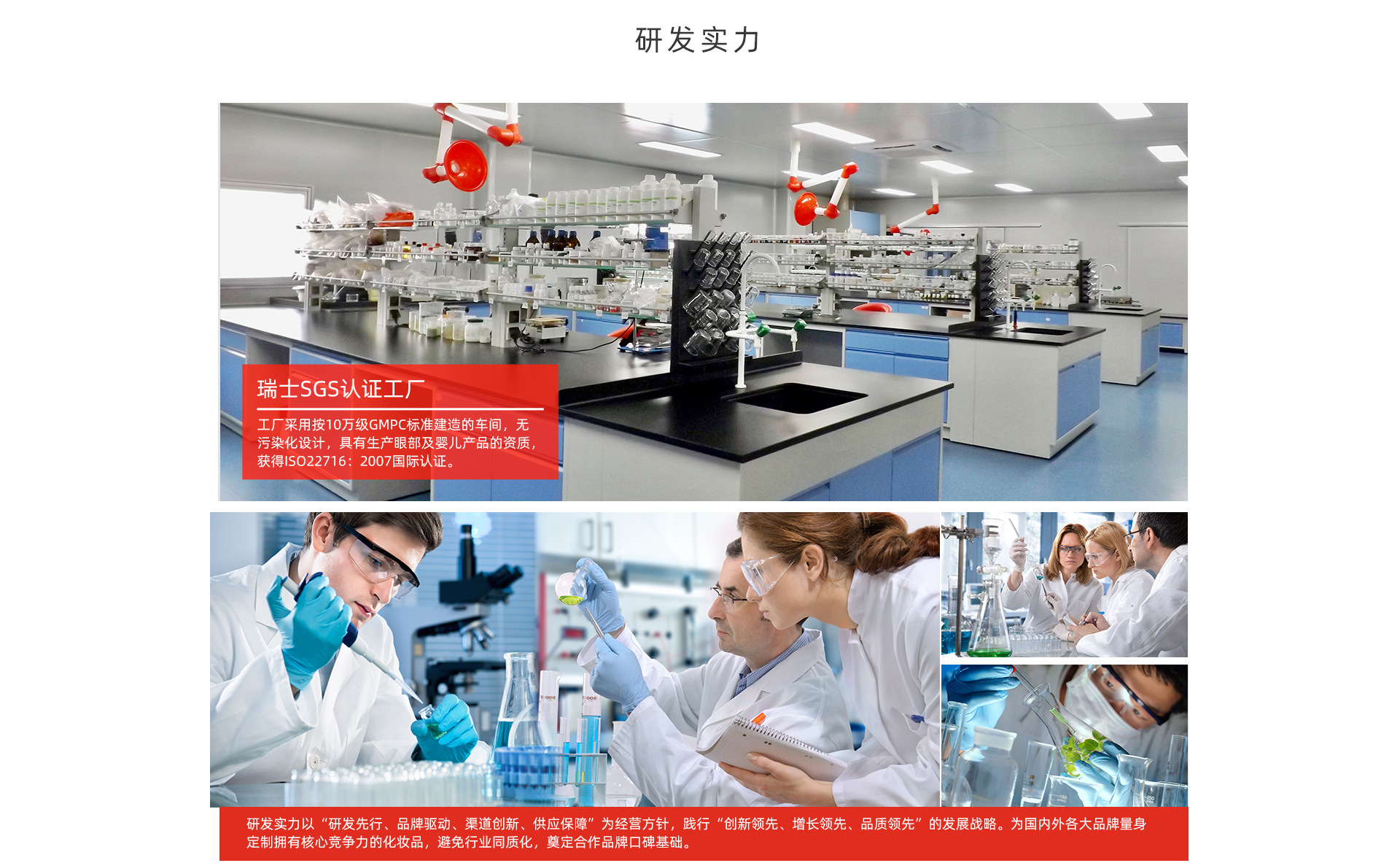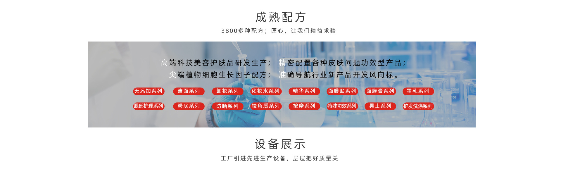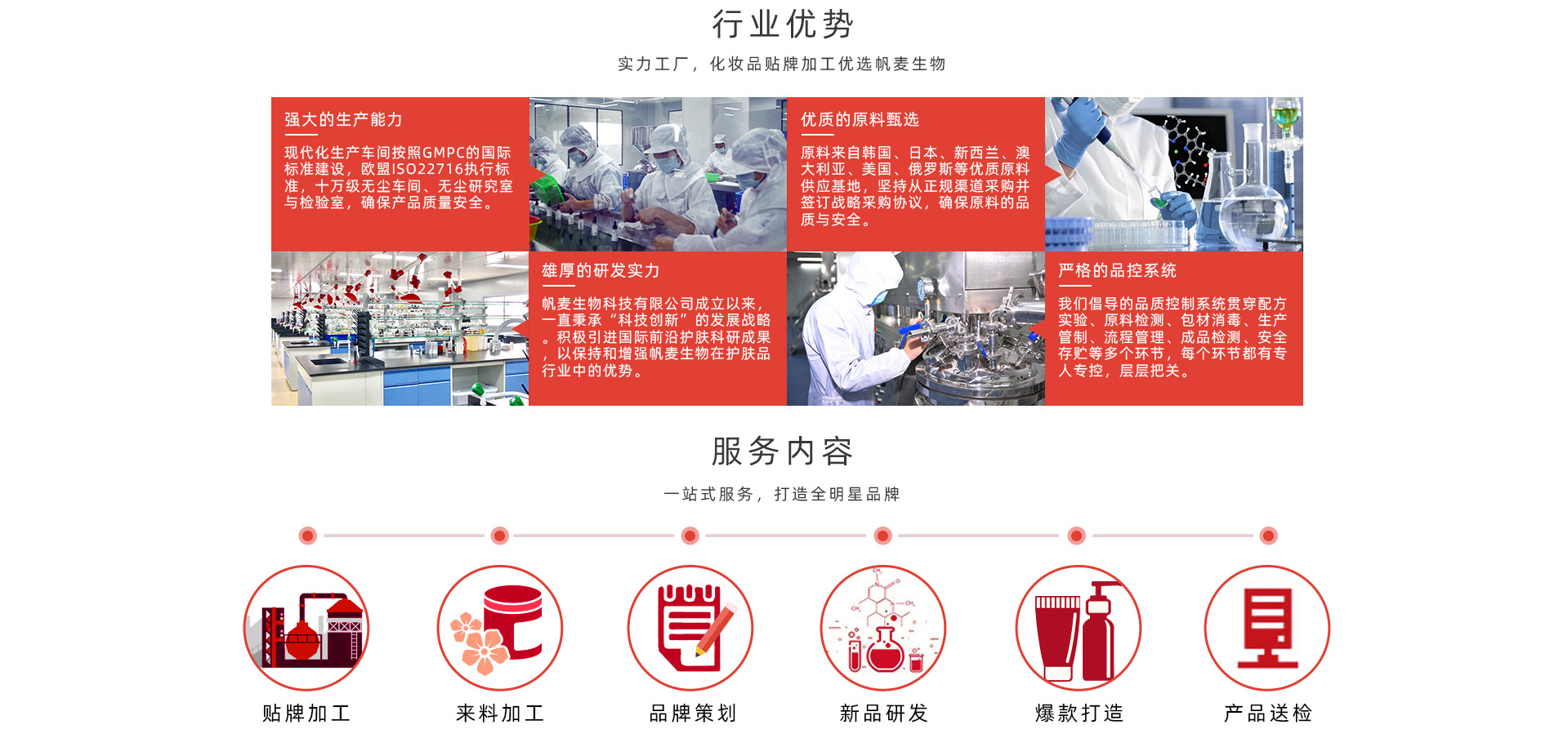 廣州優萊生物科技有限公司是一家技術裝備先進,管理規范到位,環境保護嚴格,生產設備的自動化的加工基地。公司擁有10萬級的空氣凈化車間提供了高清潔的生產環境。配有先進的生產設備和檢測儀器,擁有一批具有多年實踐經驗從事化學工程研究的高級技術人才,開發出上千種高質量的成熟配方,能全面滿足市場的各種需求。 加工廠優勢:廣州優萊生物科技有限公司是一家集原料研制、配方開發、加工生產、產品策劃及售后服務為一體的專業化妝品OEM/ODM化妝品公司。廣州優萊生物科技有限公司衷心希望與美容化妝品同行們攜手共進,開拓創新。我們本著“客戶第一,誠信至上”的原則,與多個品牌建立了長期的合作關系。熱誠歡迎各界朋友前來參觀、考察、洽談業務。 廣州優萊生物科技有限公司服務項目的優勢:我們擁有專業的研發團隊,國內一流的化妝品生產車間,豐富的OEM代加工經驗,先進的生產檢測設備,專業的管理團隊。 企業文化質量為先