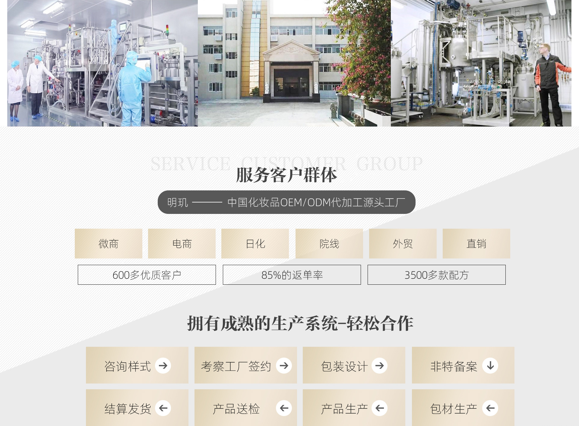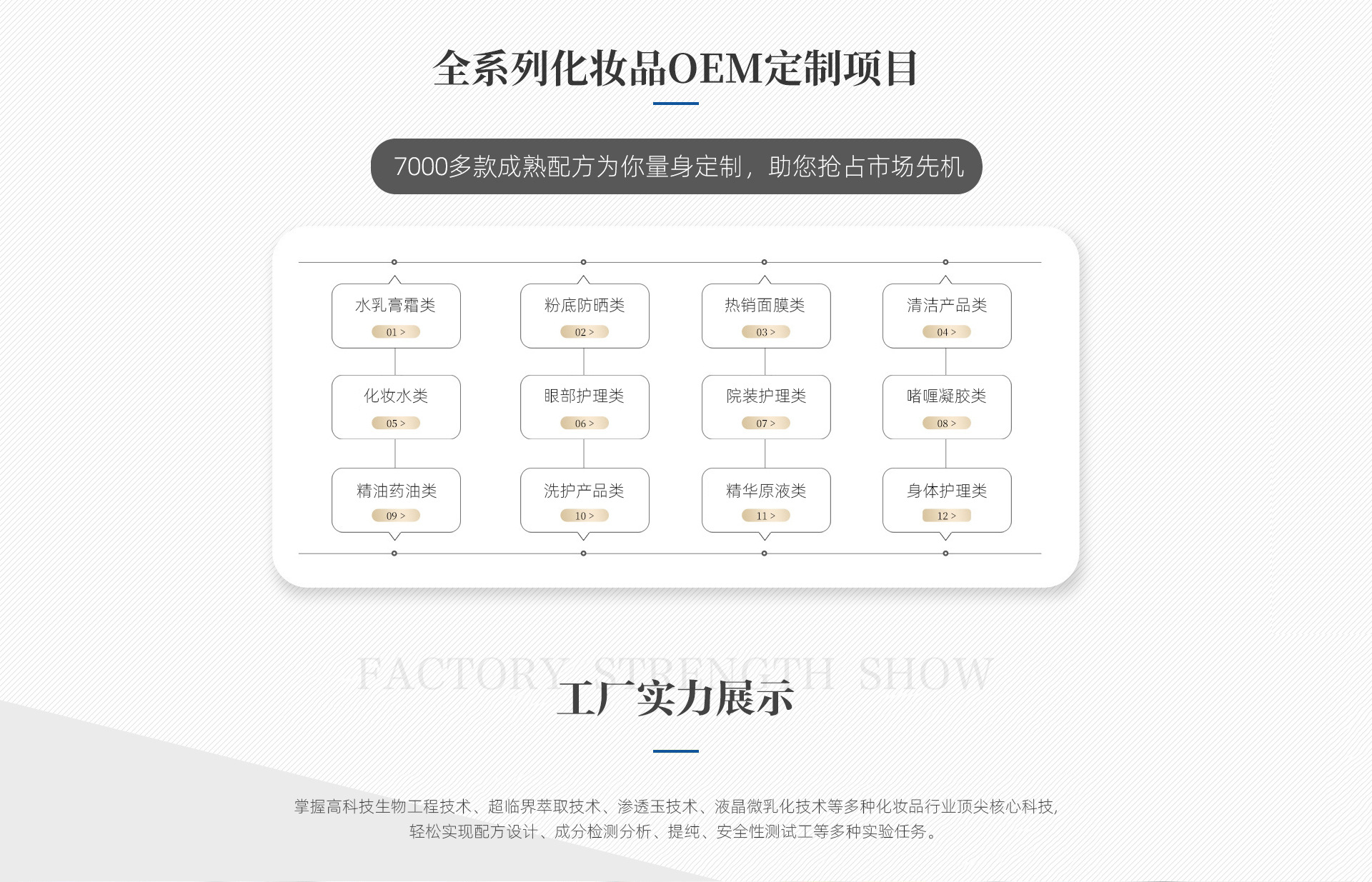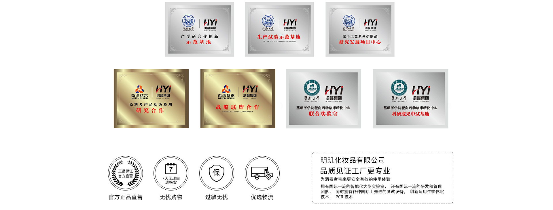 鴻懿集團主營醫藥及護膚產品的研究、開發、生產及銷售業務。 集團旗下有鴻懿藥業、鴻懿化妝品、鴻懿醫療技術等多家生產研發機構、工廠等全資子公司,并與國內知名高校暨南大學攜手產學研發展,重點開發凍干技術護膚產品。現已成功開發出:類蛇毒肽、羊胎盤素、蝦青素、寡肽、乳糖酸、富勒烯等當下熱門成分凍干粉系列產品。 鴻懿與全球眾多著名的研究團隊、實驗室、高等學府、醫院等機構有緊密合作,將現代科技和新型技術融合在一起,務求開發出最優質的醫療保健及護膚產品,并致力打造出行業領先的凍干生產提取技術及凍干產品的知名品牌。 鴻懿集團旗下工廠擁有10萬級醫藥凈化車間,并通過了歐美GMPC 認證、ISO認證。工廠生產場地超過40000平方米,凍干粉日產能超100萬對,居國內凍干粉生產企業產能前列。我廠生產技術成熟穩定,產品功能、形態多樣化,以滿足不同渠道客戶對產品的差異化需求,全面的OEM/ODM一站式輸出服務
