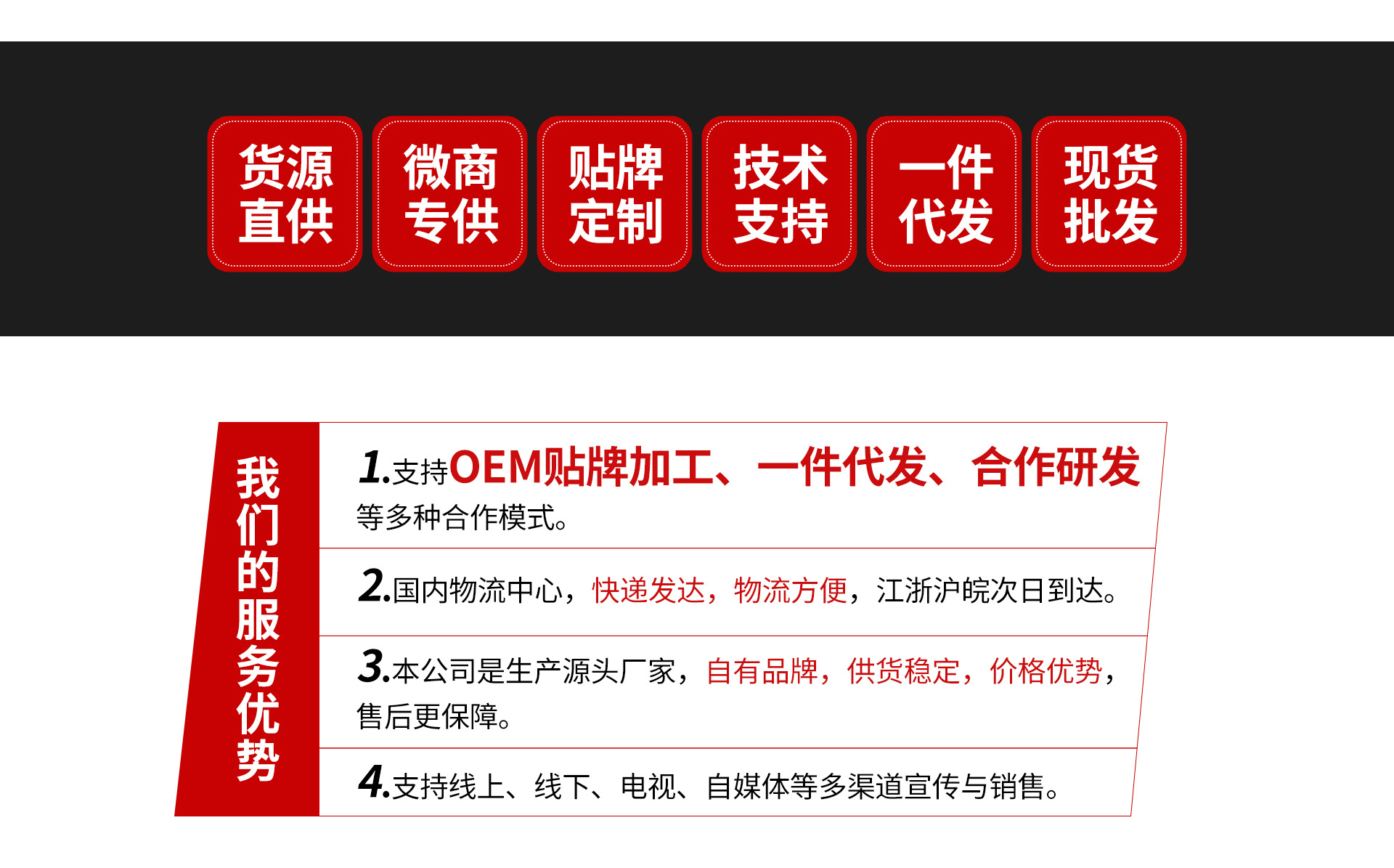 版權所有 代工幫 【m.cndrinks.cc】 CopyRight 2020-2025 豫網藥信備字[2025]00123號 電信與信息服務業務經營許可證:豫ICP備20017666號-3 鄭州代工幫網絡科技有限公司 公司地址:鄭州市金水區北環路與文化路瀚海北金B座7019室 聯系電話:0371-55621375 本站只起到信息平臺作用,不為交易經過負任何責任,請雙方謹慎交易,以確保您的權益 任何單位及個人不得發布欺騙性產品信息