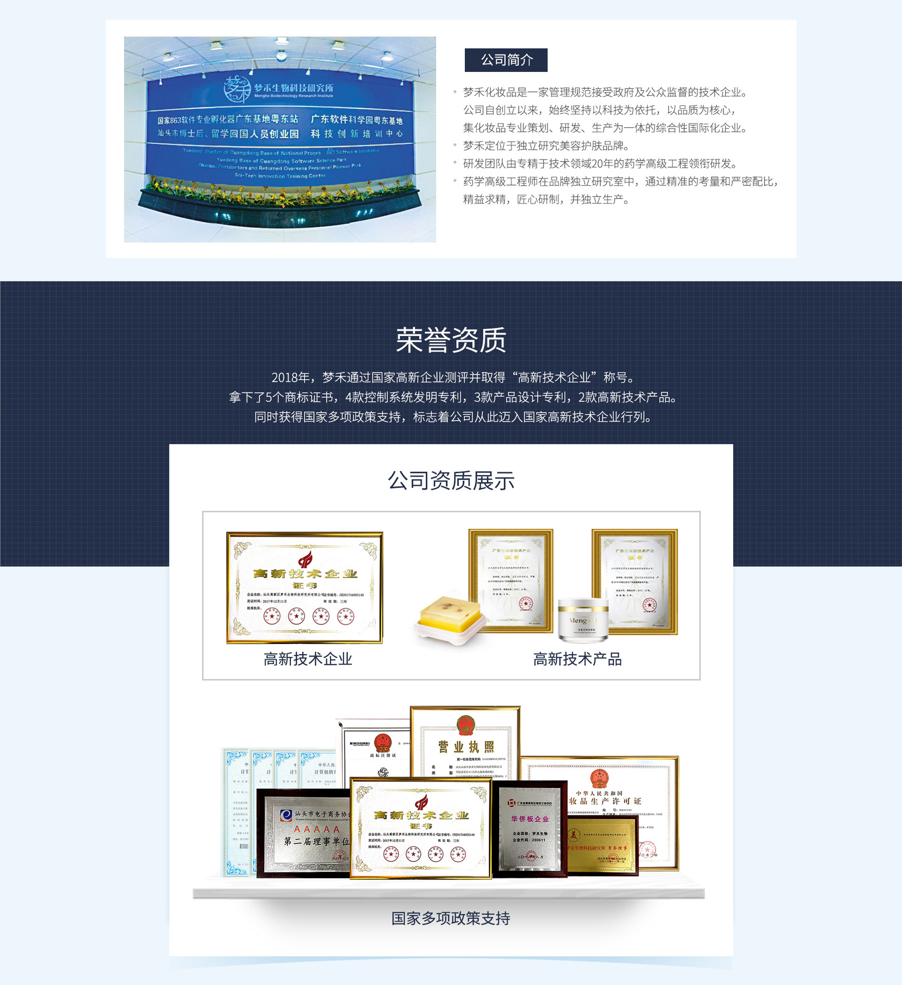 汕頭高新區夢禾生物科技研究所有限公司,是汕頭高新技術企業,自己研發生產,具備20多年研發化妝品經驗,滅菌生產車間,網紅產品設計及生產,日化線產量可達到日產3萬家件以上 ,發貨能力可達到日均一萬個快遞以上!