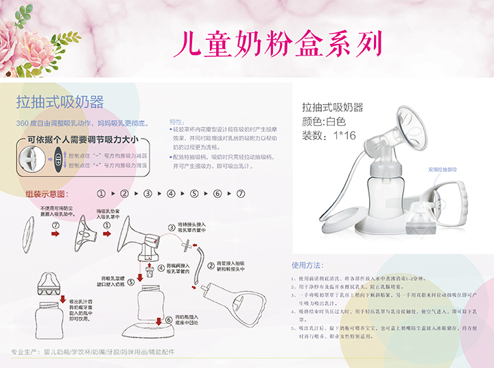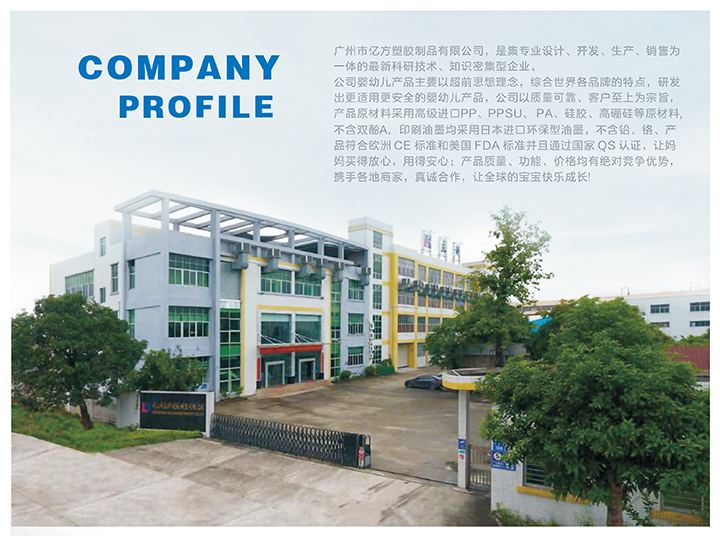 廣州市億方塑膠制品有限公司成于立2009年,專業(yè)生產(chǎn)嬰兒奶瓶奶嘴、嬰兒水杯、牙膠等系列母嬰產(chǎn)品,13年專業(yè)源頭廠家。公司嬰幼兒產(chǎn)品主要以前衛(wèi)思想理念,綜合世界各品牌的特點,研發(fā)出更適用更安全的嬰幼兒產(chǎn)品,款式新穎多樣。公司以質(zhì)量可靠、客戶至上為宗旨,產(chǎn)品原材料采用高級進口PP、PPSU、PA、硅膠,高硼硅等原材料,不含雙酚A,印刷油墨均采用日本進口環(huán)保型油墨,不含鉛、鉻,產(chǎn)品符合歐洲CE標準和美國FDA標準并且通過國家QS認證,讓媽媽買得放心,用得安心;主要服務于進出口貿(mào)易產(chǎn)品,優(yōu)質(zhì)外貿(mào)跨境平臺,國內(nèi)知名品牌供應,OEM定制,大型婦幼保鍵院,大型連鎖月子中心,大型母嬰連鎖系統(tǒng)等。產(chǎn)品質(zhì)量、功能、價格均有競爭優(yōu)勢,攜手各地商家,真誠合作,讓全球的寶寶快樂成長!