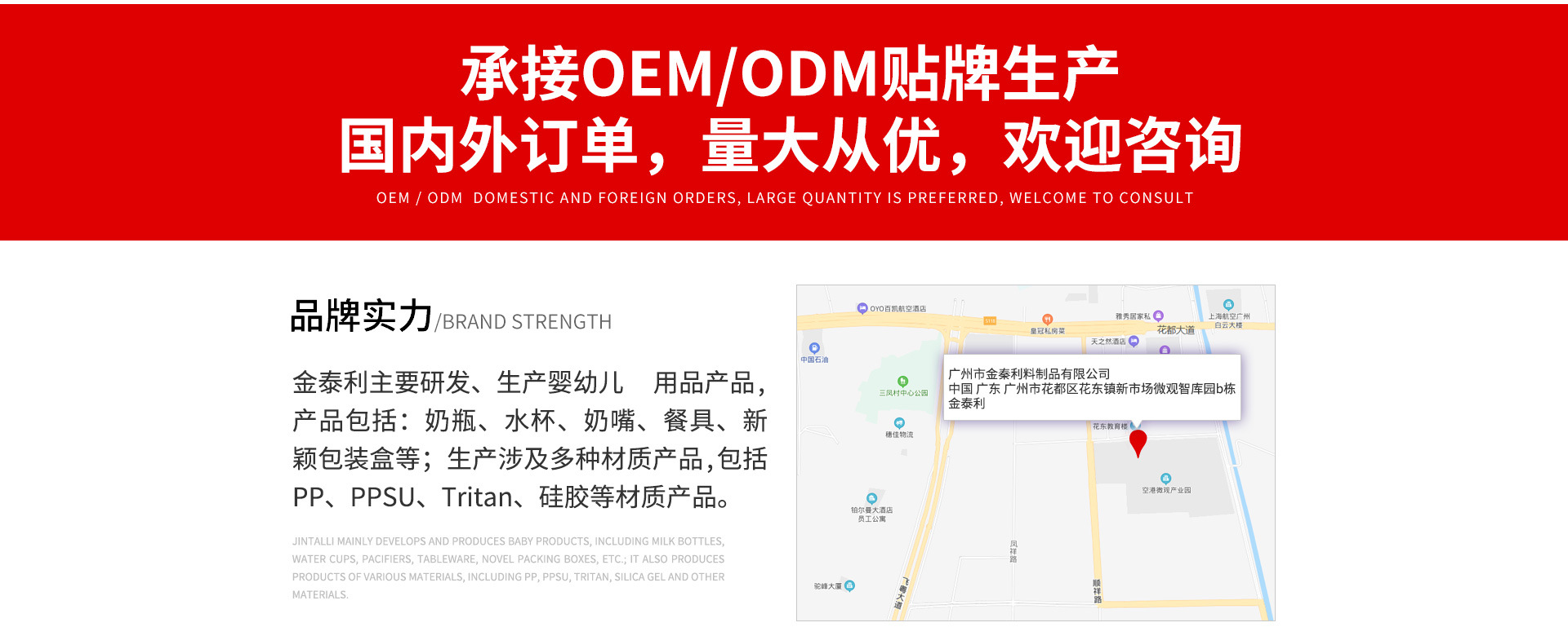 廣州市金泰利塑料制品有限公司是一家專業(yè)生產(chǎn)PP、PPSU、Tritan等材質(zhì)嬰兒用品的新型現(xiàn)代企業(yè),產(chǎn)品包括奶瓶、水杯、水壺、硅膠奶嘴等;從產(chǎn)品的研發(fā)、模具的設計生產(chǎn)、產(chǎn)品的生產(chǎn)、絲印、組裝等都由我廠自主完成。我廠部門劃分:產(chǎn)品設計部;模具生產(chǎn)部;吹瓶部門;硅膠生產(chǎn)部門;單色注塑機生產(chǎn)部;雙色注塑機生產(chǎn)部;絲印部門;組裝部門等;真誠期待與各位客戶合作!