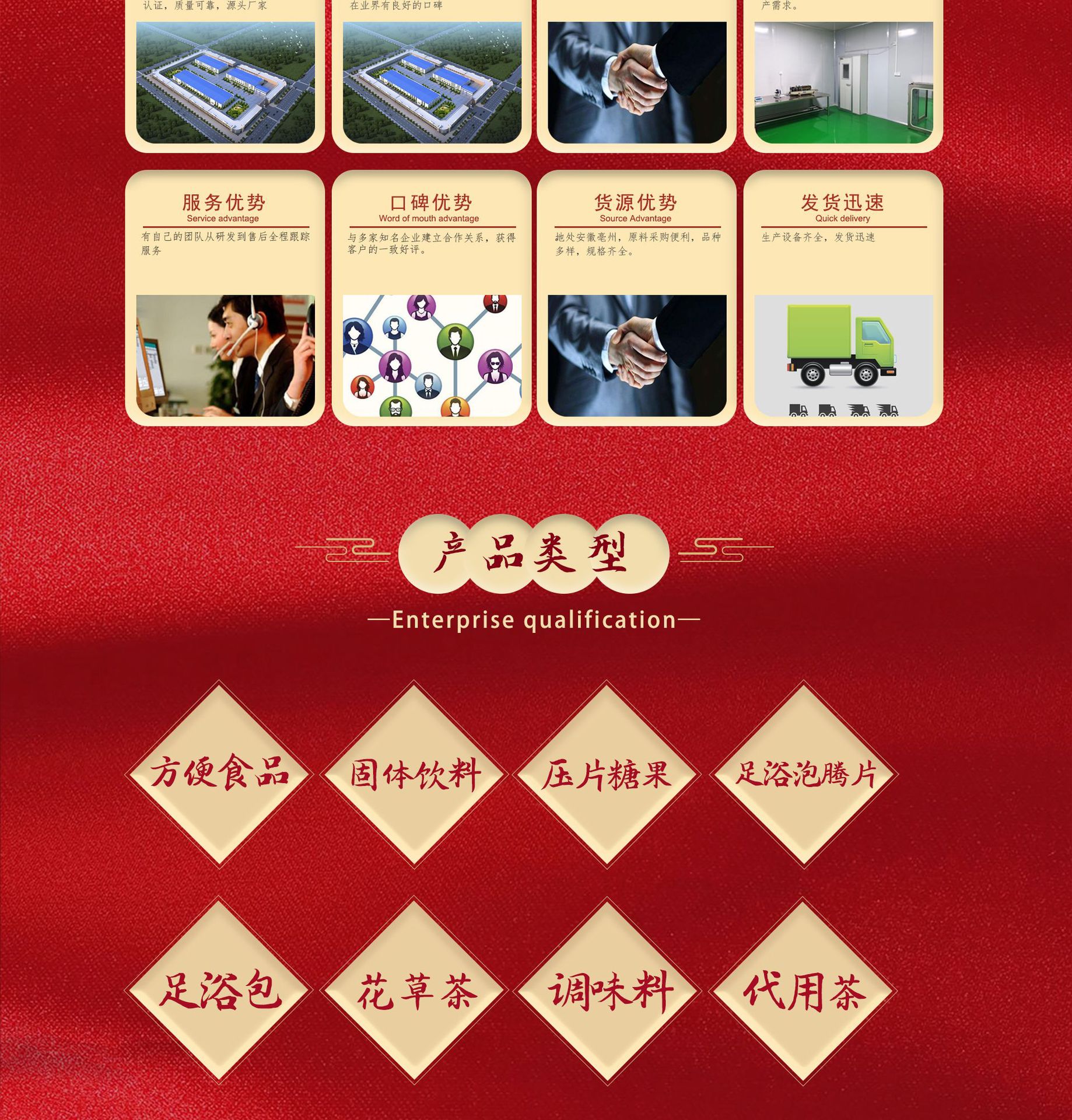 實力商家 源頭企業 擁有地理優越條件 廠區占地28畝,標準化生產車間5000余平方米,公司員工103人,其中生產團隊80人,研發團隊5人,銷售團隊10人,后勤物資采購8人 生產流水線9條 加工設備25臺 日產茶包總和75萬小包