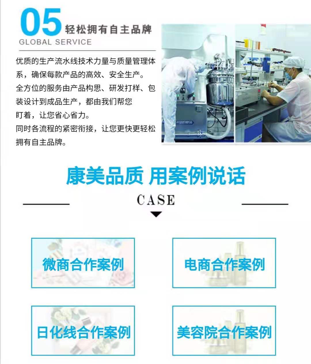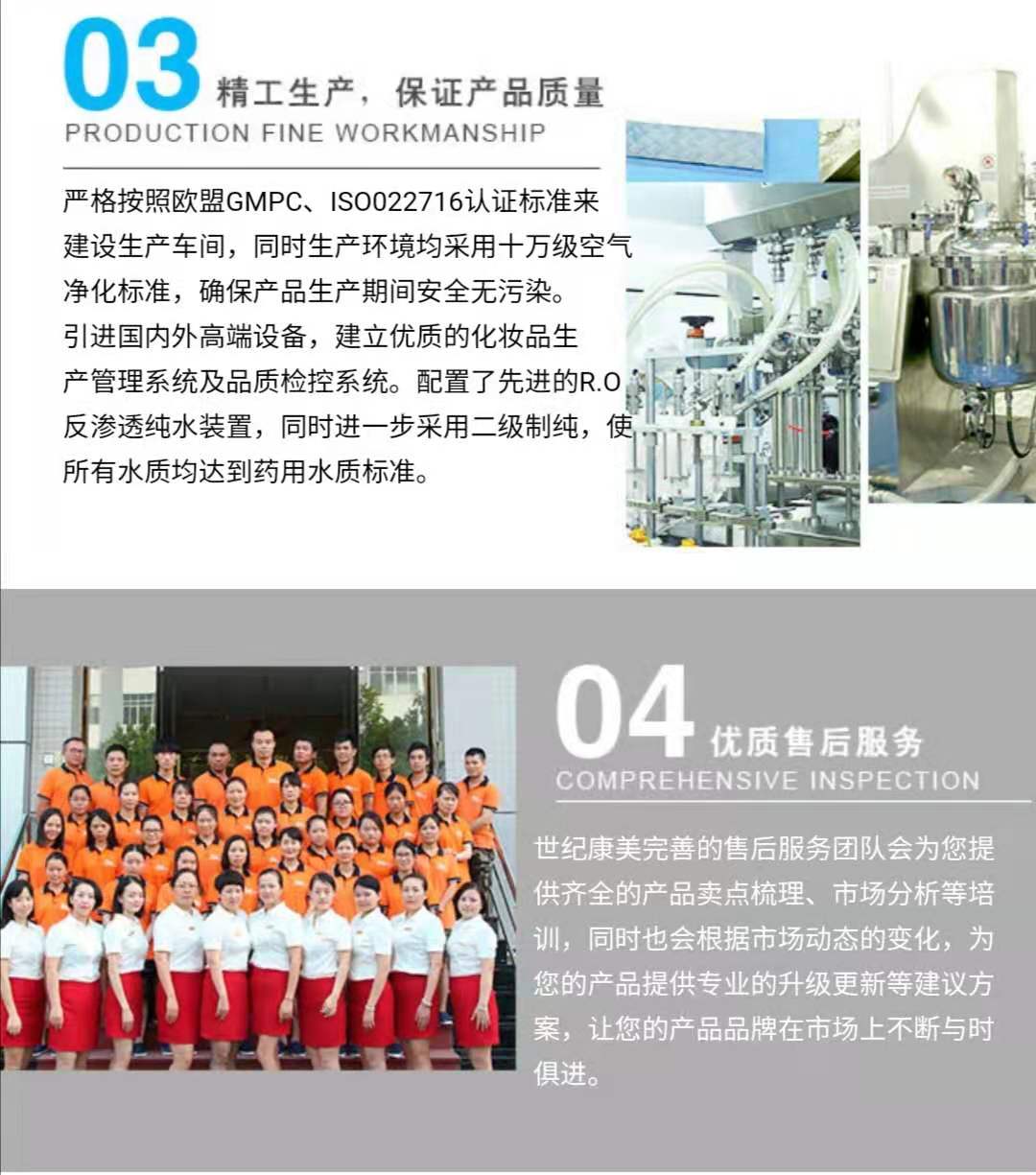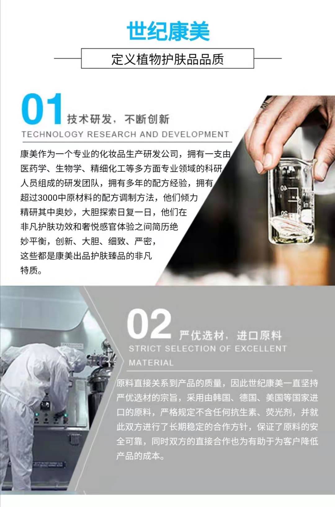 珠海世紀康美生物科技有限公司匠心只為精品,定義植物護膚品品質品質源于恒久的追求,成功源自點滴的積累,珠海世紀康美生物科技有限公司專注于高科技美容產品的生產與研發,為國內眾多品牌商提供化妝品研發制造、品牌策劃包裝、市場營銷咨詢等一站式OEM/ODM專業服務。在品質保障上精益求精,在美麗探尋中力臻完美。公司是專業從事化妝品研發、生產及銷售于一體的OEM/ODM代加工企業公司,憑借自身的研發實力,產品理念設計能力與高標準的質量管理體系,成功打造行業內眾多知名化妝品品牌,成為行業佼佼者。