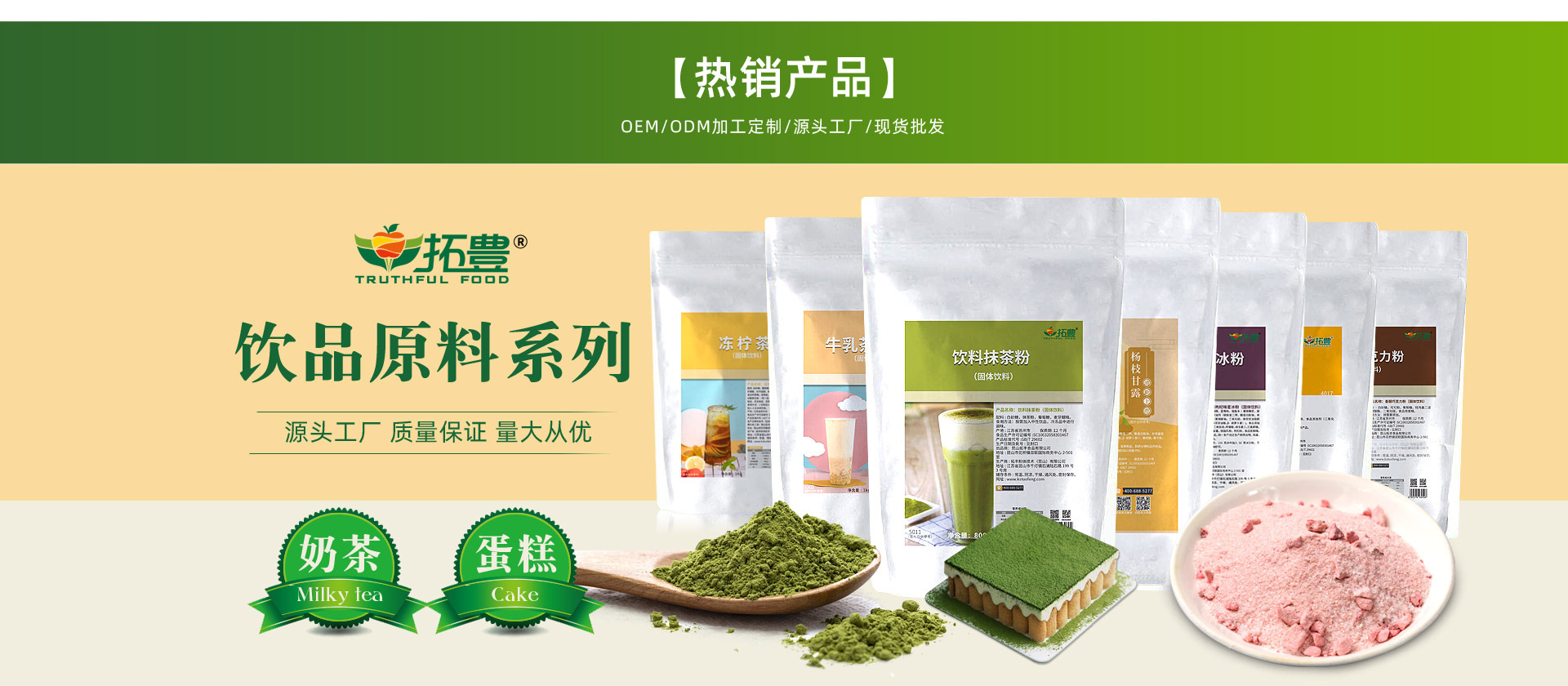 昆山拓豐食品有限公司位于江蘇省昆山市花橋商務經濟服務區。以拓豐粉體技術(昆山)有限公司為依托,以創新服務趨勢,面向餐飲渠道終端提供飲品配方出品服務。