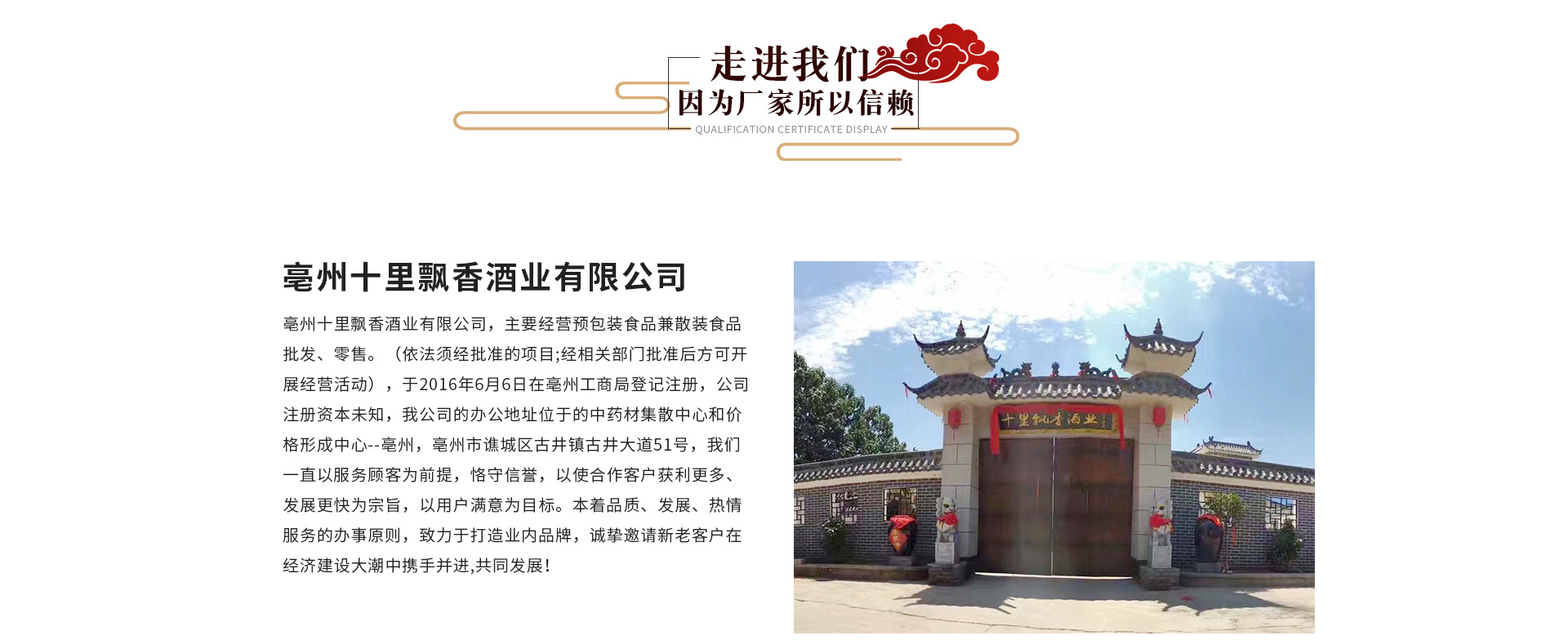 亳州十里飄香酒業有限公司 經銷批發的白酒暢銷消費者市場,在消費者當中享有較高的地位,公司與多家零售商和代理商建立了長期穩定的合作關系。亳州十里飄香酒業有限公司經銷的白酒品種齊全、價格合理。亳州十里飄香酒業有限公司實力雄厚,重信用、守合同、保證產品質量,以多品種經營特色和薄利多銷的原則,贏得了廣大客戶的信任。