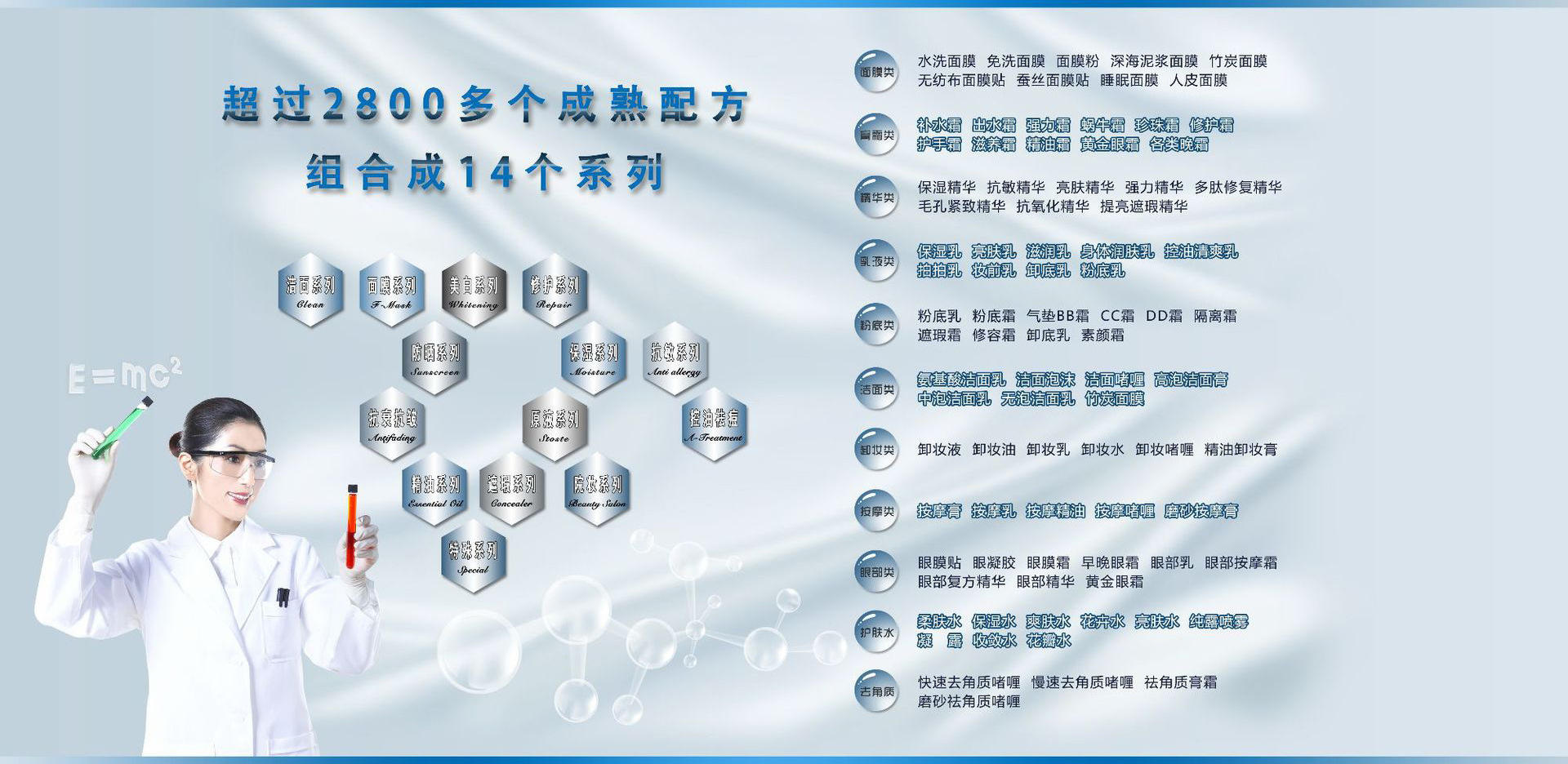 廣州控顏生物科技有限公司是一家專業從事高端化妝品研發、生產、銷售、服務、及功效性原料供應于一體的OEM、ODM(代加工)綜合性企業。擁有八千平方標準廠房,10萬級生產車間及歐盟認證實力資質,本公司以“產品質量——安全 ? 有效;協同合作——雙向 ? 共贏”為經營理念,著力打造以客戶為根本,以質量為命脈,讓顧客放心的自主品牌加工基地。以雄厚的技術力量作后盾,不斷的研發各種天然、獨特、安全、高效的高品質產品,根據市場及顧客的需求進行靈活性的配方設計,幫您生產個性化產品,助您創造自己的品牌。我們的產品范圍:護膚系列、補水保濕類、祛斑美白類、 消炎祛痘類、 祛皺保濕類 、豐胸美乳類、 瘦身減肥類、 紅血絲修復類、 妊娠紋修復類、 眼部三癥類、 抗敏修復類等