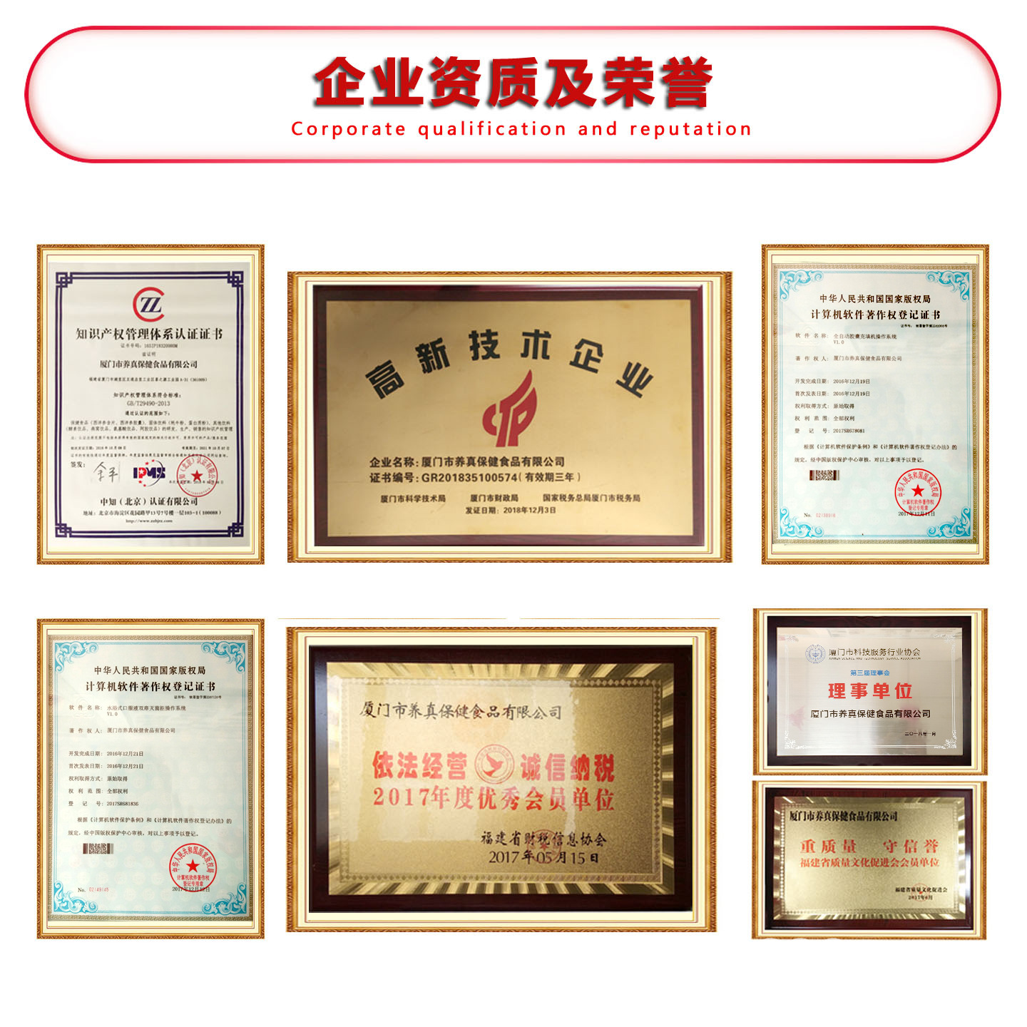 1998年,廈門市養(yǎng)真保健食品有限公司開始致力健康食品研發(fā)生產(chǎn),如今已經(jīng)發(fā)展為一家擁有核心技術(shù)、知識產(chǎn)權(quán)和品牌渠道的現(xiàn)代化高新技術(shù)企業(yè)。先后榮獲各種資質(zhì)獎勵五十余次,擁有56項專利技術(shù)、超過500種成熟配方。廠區(qū)占地三十畝,生產(chǎn)車間總面積達20000多平米,廠區(qū)內(nèi)建成專業(yè)標準的保健產(chǎn)品研發(fā)實驗室、多條十萬級GMP認證生產(chǎn)車間及現(xiàn)代化全自動生產(chǎn)線。 我們擁有權(quán)威的醫(yī)藥、生物專家研發(fā)團隊,多名研發(fā)工程師。與廈門市醫(yī)藥研究所、臺灣保生養(yǎng)真堂研發(fā)中心等達成合作研發(fā)關(guān)系。建設(shè)了強大的營銷渠道網(wǎng)絡(luò),擁有經(jīng)驗豐富的渠道銷售人員,致力于打造更完善的營銷體系。如今業(yè)務(wù)發(fā)展到28個省、自治區(qū)、直轄市。擁有強大的售后網(wǎng)絡(luò)系統(tǒng),為客戶提供更快捷、更高效的服務(wù)。