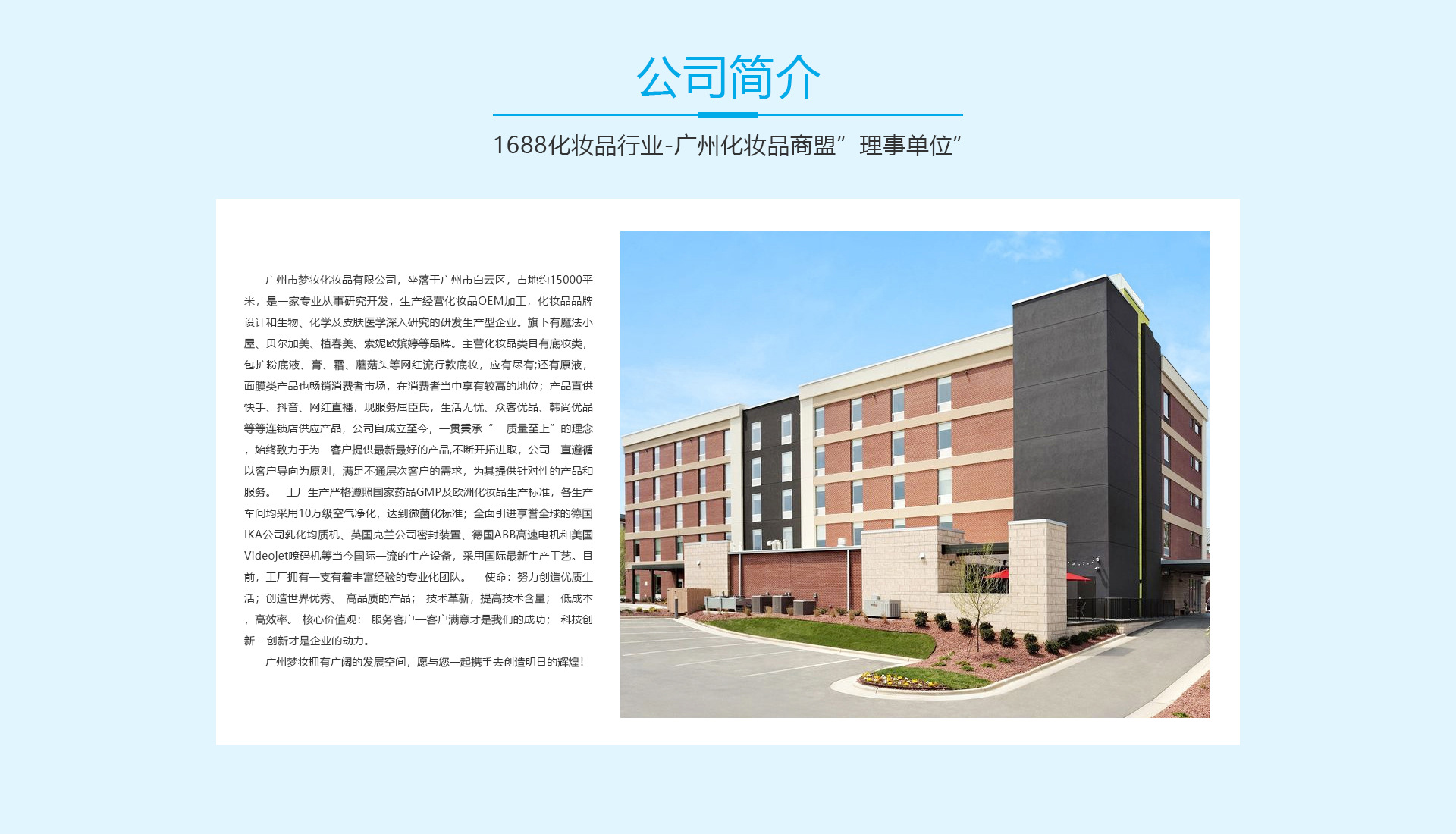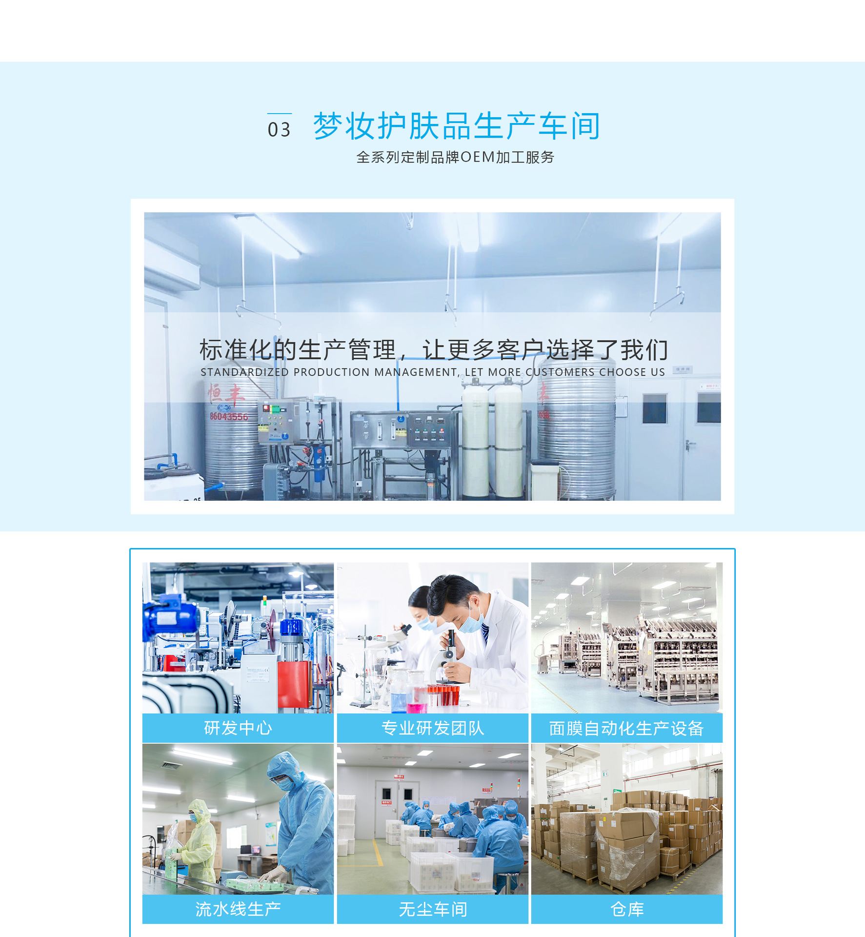 廣州夢(mèng)妝化妝品有限公司是一家極富創(chuàng)新精神的化妝品廠家。成立于2011年,坐落于廣東廣州白云區(qū),公司擁有兩萬(wàn)平方米的現(xiàn)代化工廠。一家科研,生產(chǎn),銷售一體化的綜合型企業(yè)。并以純天然植物萃取為原料采用新鮮提取為核心技術(shù),秉持“以人為本,以精立業(yè),以質(zhì)取勝,以誠(chéng)服務(wù),源自全球,天然美肌”的經(jīng)營(yíng)理念。以產(chǎn)品質(zhì)量為企業(yè)發(fā)展之命脈,以市場(chǎng)為消費(fèi)導(dǎo)向,以信譽(yù)為企業(yè)生存之根本?,F(xiàn)公司已擁有穩(wěn)定且成熟的全國(guó)市場(chǎng)批發(fā)商,中小經(jīng)銷商,網(wǎng)絡(luò)及一大批忠實(shí)的消費(fèi)者。公司業(yè)務(wù)覆蓋全國(guó),貨源充足穩(wěn)定,品質(zhì)保障,成為客戶最值得信賴的朋友!