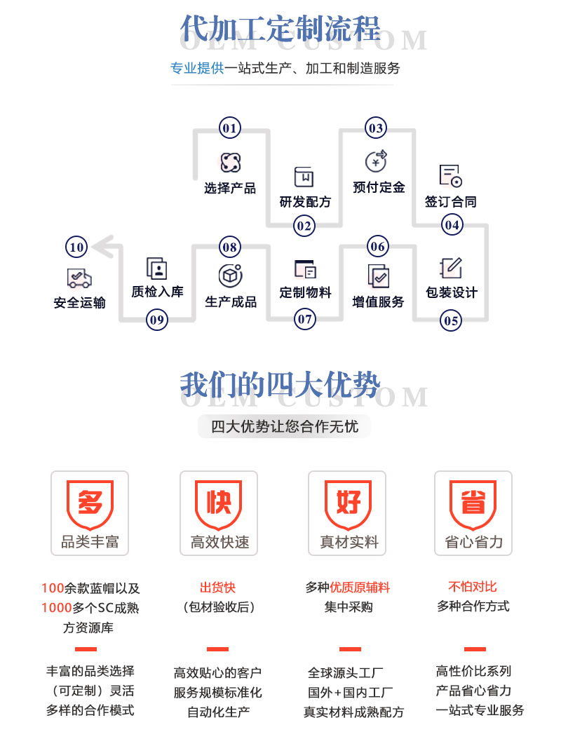 團隊與服務:高管團隊沉淀20余年行業經驗,精準洞察需求,定制化方案高效輸出,代加工、進出口全流程無縫銜接,為渠道商降本提效。
