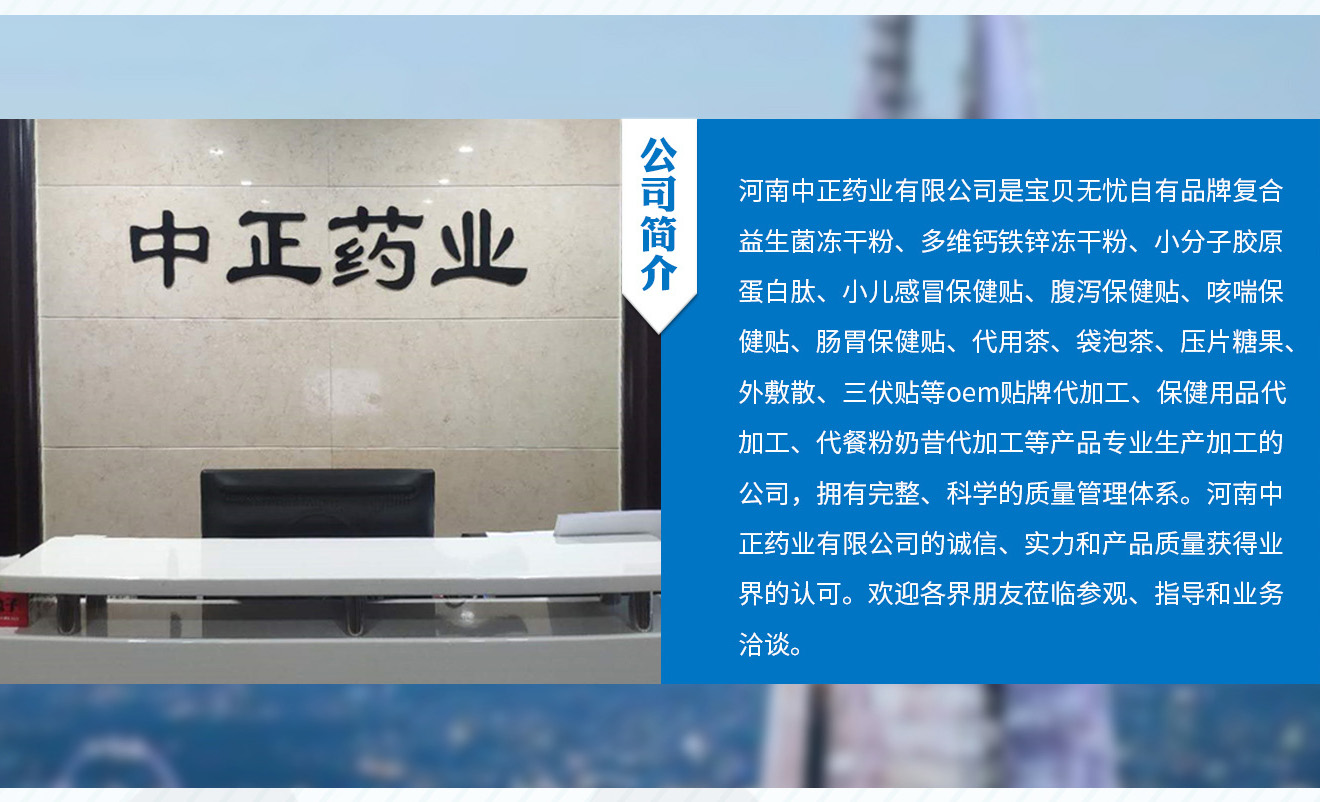 河南中正藥業有限公司位于華夏文明的發源地河南省鄭州市新鄭市,是-家集中藥產品的研發、功能性食品、保健食品、保健用品、藥食同源產品、消毒用品的生產銷售服務為-體的現代化高科技公司。現可生產粉劑、片劑、中藥的丸劑顆粒劑、代用茶、膏滋、以及男女私護的洗劑、皮膚外用膏劑、膏藥等多種劑型。