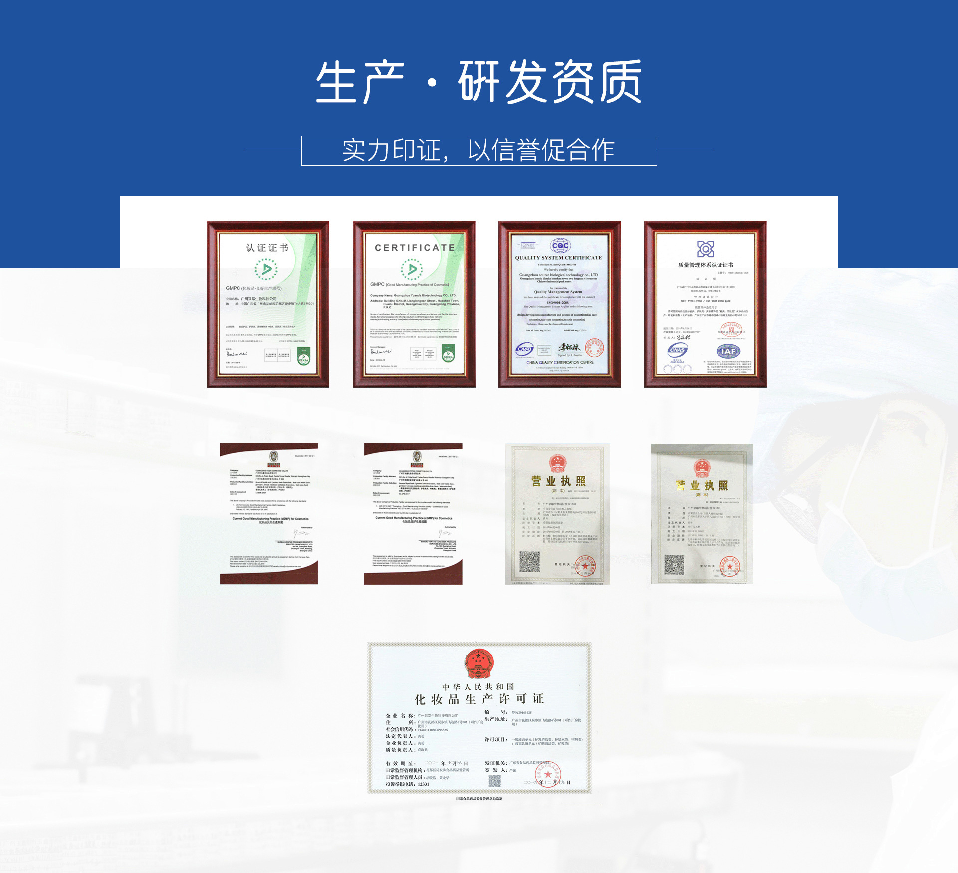 廣州采萃生物科技有限公司是一家集科研、生產、營銷、服務及培訓于于一體的綜合性化妝品OEM生產企業,產品涵蓋護膚、美容、保健、洗滌及嬰幼兒護理,公司擁有10萬級的GMPC標準生產車間。我們本著嚴謹高效的原則,為客戶生產安全高效的創造美麗的產品。為了產品更安全有效,更符合國際化品質,我們還與多位國際知名化妝品牌技術工程師和設計顧問合作,截止到今天,我們已擁有十多名化工專業人員、生物學家、醫學專家。在采萃公司,“品質”永遠是企業的根基! 企業文化是我們一直致力經營的精神財富 我們一直相信優秀的企業文化蘊含著難以估量的力量。采萃的企業文化一直是我們生存和發展的重要戰略資源和寶貴的物質及精神財富,更是提高企業整體素質和核心競爭力的重要內容。我堅信,企業發展的最終目的是文化的創造與宣揚。采萃是一個年輕的企業,美麗如絢爛朝陽,新生的氣息充斥在企業的每個角落。 我們的企業宗旨是:創新、完美