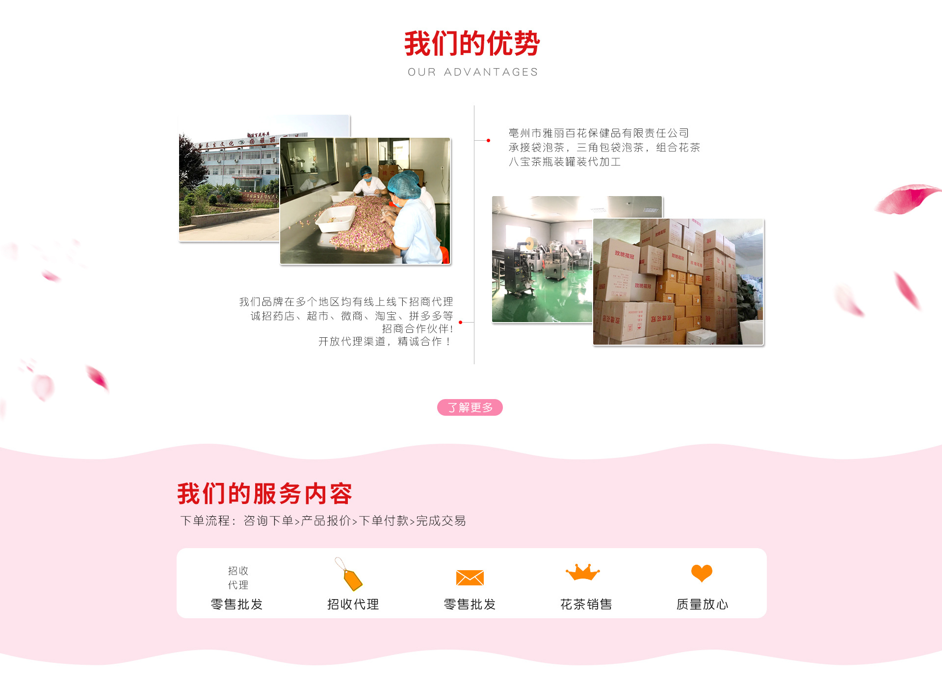 雅麗百花:500種花草茶,面向全國直銷批發團購,OEM代加工!花茶品種有:紫玫瑰、粉玫瑰、茉莉、百合花片、百合花朵、大麥茶、洋甘菊、紫羅蘭、金蓮花、熏衣草、桃花、三七花、人參花、夜來香、蘋果花、千里香、木瓜絲、菩提葉、菩提子、康乃馨、竹葉青、枸杞、甘草、板藍根、黃芪、靈芝、貢菊、金貢菊、金盞菊、荷葉、荷花、麥冬、苦丁茶、檸檬草、馬鞭草、陳皮、決明子、月季、杜鵑花、芍藥花、牡丹花、羅布麻、七彩菊、野生苦丁茶、柚子花、凌霄花、葛花、梔子花、梔子、金纓子、銀杏茶、玉蘭花、野菊花、米菊、木槿花、勿忘我、金銀花、番瀉葉、天山雪蓮茶、進口千葉玫瑰、進口熏衣草、進口迷迭香、進口洋甘菊、迷迭香、厚樸花、芙蓉花、蘆薈、香金桂、桂花、人參化籽、槐花、大棗、萬壽菊、杭白菊、太陽菊、甜菊葉、千日紅、紅巧梅、雪中情、薄荷、玉蝴蝶、康仙花、檸檬片、紅雪茶、白雪茶、絞股蘭、野生絞股蘭、特級野生龍須絞股蘭、辛夷花、山查