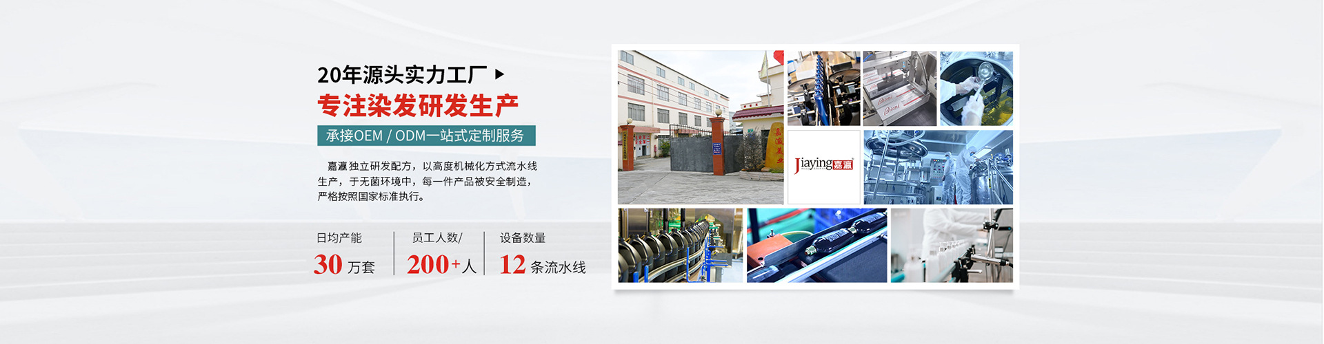 廣州嘉瀛化妝品有限公司,成立于2005年6月18日,是目前國內最大的專業美發品研發生產銷售型企業。總部設在廣東省廣州市。現企業占地面積2.8萬平米,擁有10條全自動染音生產線和GMP無菌洗護造型產品專業生產車間。特證植物配方、 一色一證。彩色蓋白發,原生發一步到位,無需漂色, 可私人定制0EM、0DM