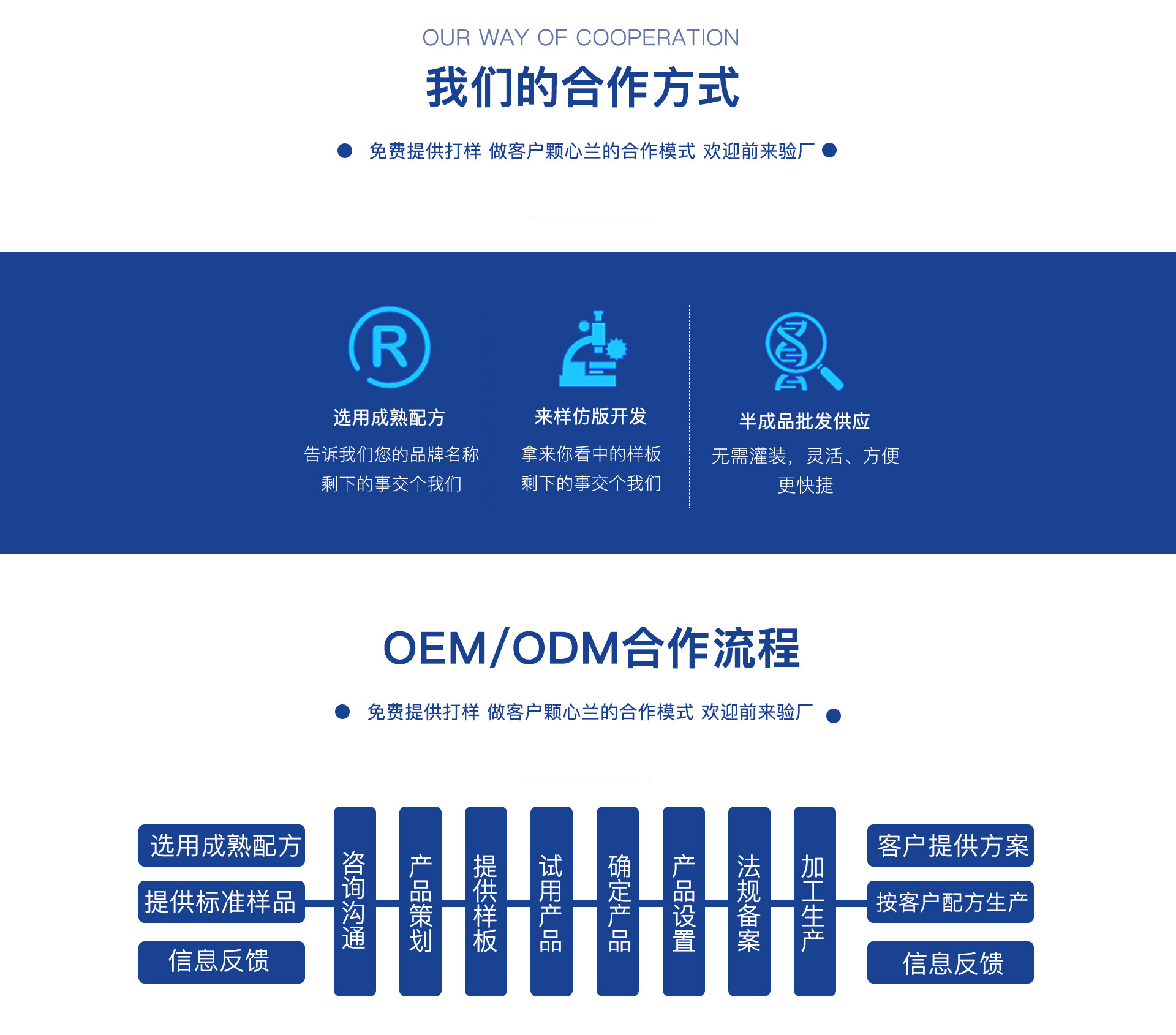 肌之研(廣州)生物科技有限公司是一家極富有創新精神的化妝品加工(OEM/ODM)服務企業,主要面 向品牌客戶提供生產、研發、設計、采購、生產為一體的代加工服務以及技術支持服務。擁有完整的個人 護膚品品類。本公司“以人為本,以精立業,以質取勝,以誠服務”的經營理念,以產品質量為企業發展 的命脈,以市場為消費導向,以信譽為企業生存之根本。