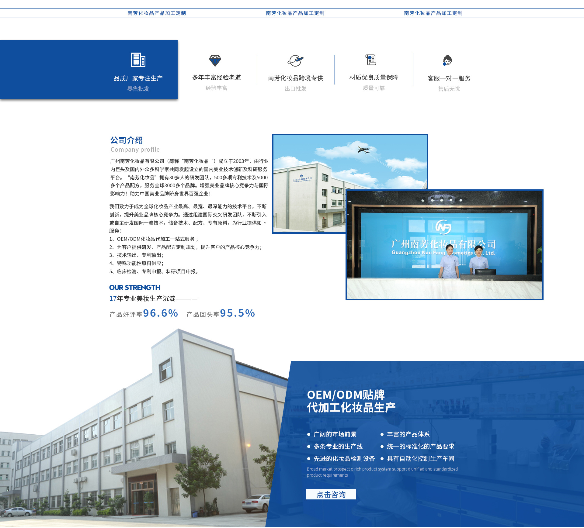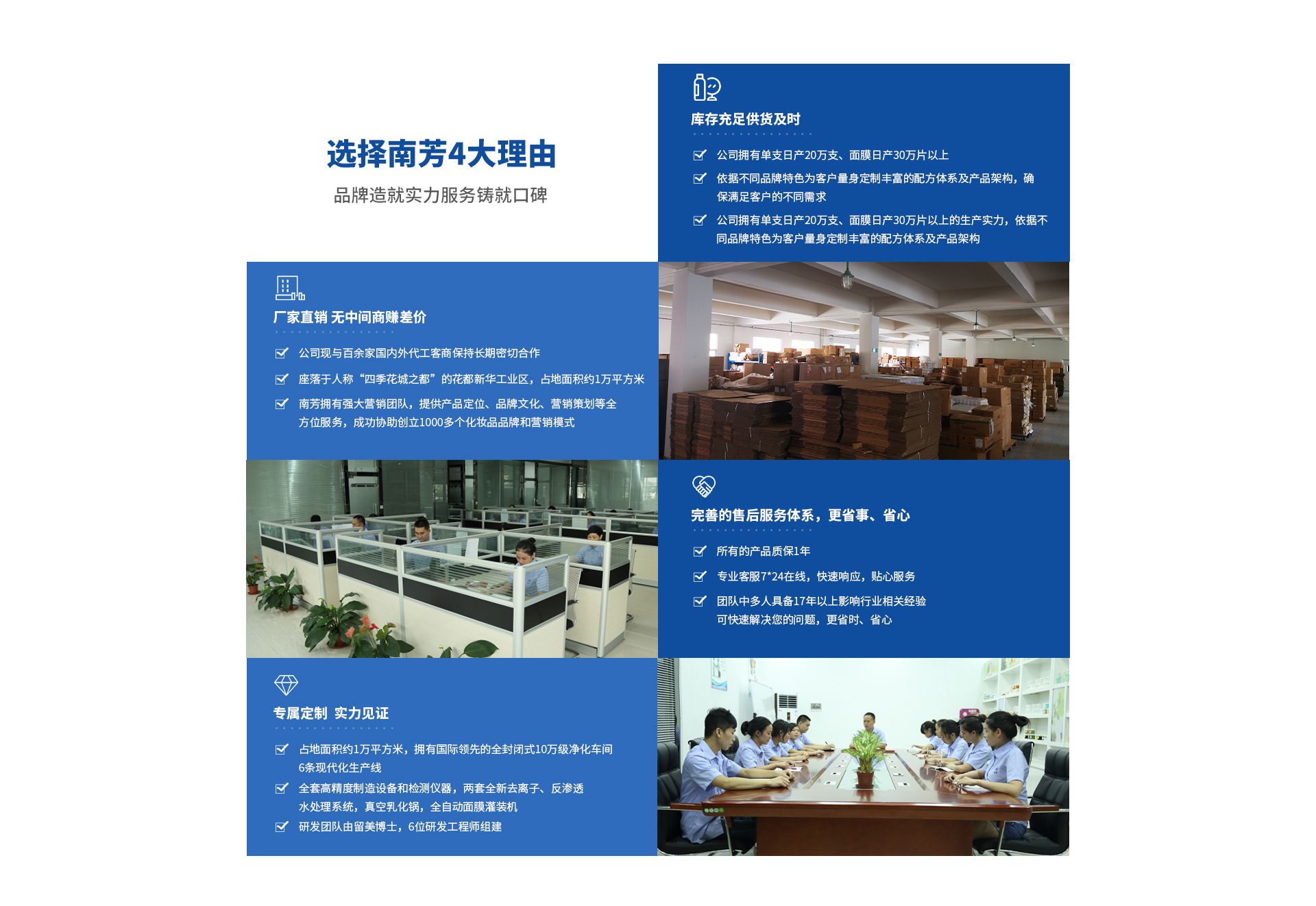 廣州南芳化妝品有限公司(簡稱“南芳化妝品“)成立于2003年,由行業內巨頭及國內外眾多科學家共同發起設立的國內美業技術創新及科研服務平臺?!澳戏蓟瘖y品”擁有30多人的研發團隊,500多項專利技術及5000多個產品配方,服務全球3000多個品牌。增強美業品牌核心競爭力與國際影響力!助力中國美業品牌躋身世界百強企業!
