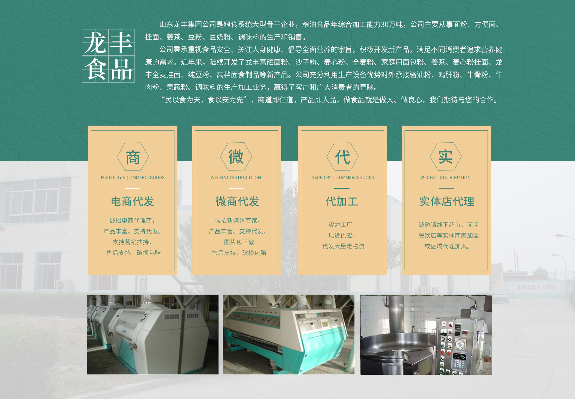 新龍亞洲食品(煙臺)有限公司成立于1993年,年生產能力為6萬噸。主要產品為“龍豐”牌系列方便面,包括:休閑食品系列、袋裝面系列、杯裝系列、碗裝系列及OEM加工系列。 公司擁有國內先進的方便面生產線,生產線配備了先進的檢驗、試驗、計量設施。主要原料選用“龍豐”牌方便面專用粉,其質量在全國同行業位居前列。“龍豐”系列方便面干食香脆可口,久煮不斷條,不糊湯,產品暢銷全國,并已銷往世界各地,深受消費者喜愛。 近年來,我公司依靠沿海的優越地理位置及方便面配套產業一條龍的優勢,努力打造以方便面出口和OEM加工為主體的方便面專業航母。在管理上,公司始終堅持以市場為導向,與時俱進的經營思路,建立了一套適合公司實際的質量管理體系,于1997年通過了ISO9002質量休系認證,成為方便行業首家通過質量認證的企業;于2005年通過了HACCP體系認證,進一步改進了公司的管理水平,提高了公司綜合競爭力。