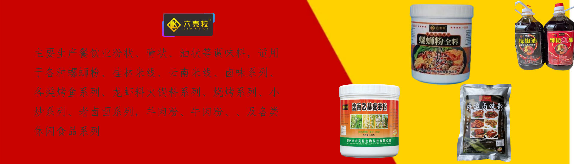 本公司座落于美麗的廣西,柳州市柳江區(qū)、新興四方塘工業(yè)區(qū)園內(nèi),我公司離高速公路僅有三公里,離柳州蓮花機(jī)場也只有五公里路程, 有輕軌直通柳州各站,交通非常便捷。 我廠自2019年元月1日正式開業(yè) ,主要生產(chǎn)餐飲業(yè)粉狀、膏狀、油狀等調(diào)味料,適用于各種螺螄粉、桂林米線、云南米線、鹵味系列、 各類烤魚系列、龍蝦料火鍋料系列、燒烤系列、小炒系列、老鹵面系列,羊肉粉、牛肉粉、、及各類休閑食品系列,多種系列我們都有 一套配方。現(xiàn)階段我公司產(chǎn)品銷售市場良好,公司分別在海南、云南、貴州、廣東、廣西等地設(shè)立了銷售辦事處,產(chǎn)品銷售覆蓋全國各 地,我們設(shè)想在鞏固現(xiàn)有銷售市場上向海外開發(fā)市場,廠區(qū)面積1405平方米,另設(shè)有倉庫500平方米,現(xiàn)有員工32人,廠區(qū)容量及機(jī)械 設(shè)備年產(chǎn)值可產(chǎn)量八千萬之多。公司所有員工熱忱歡迎各經(jīng)銷商前來公司洽談業(yè)務(wù)、光臨指導(dǎo)!