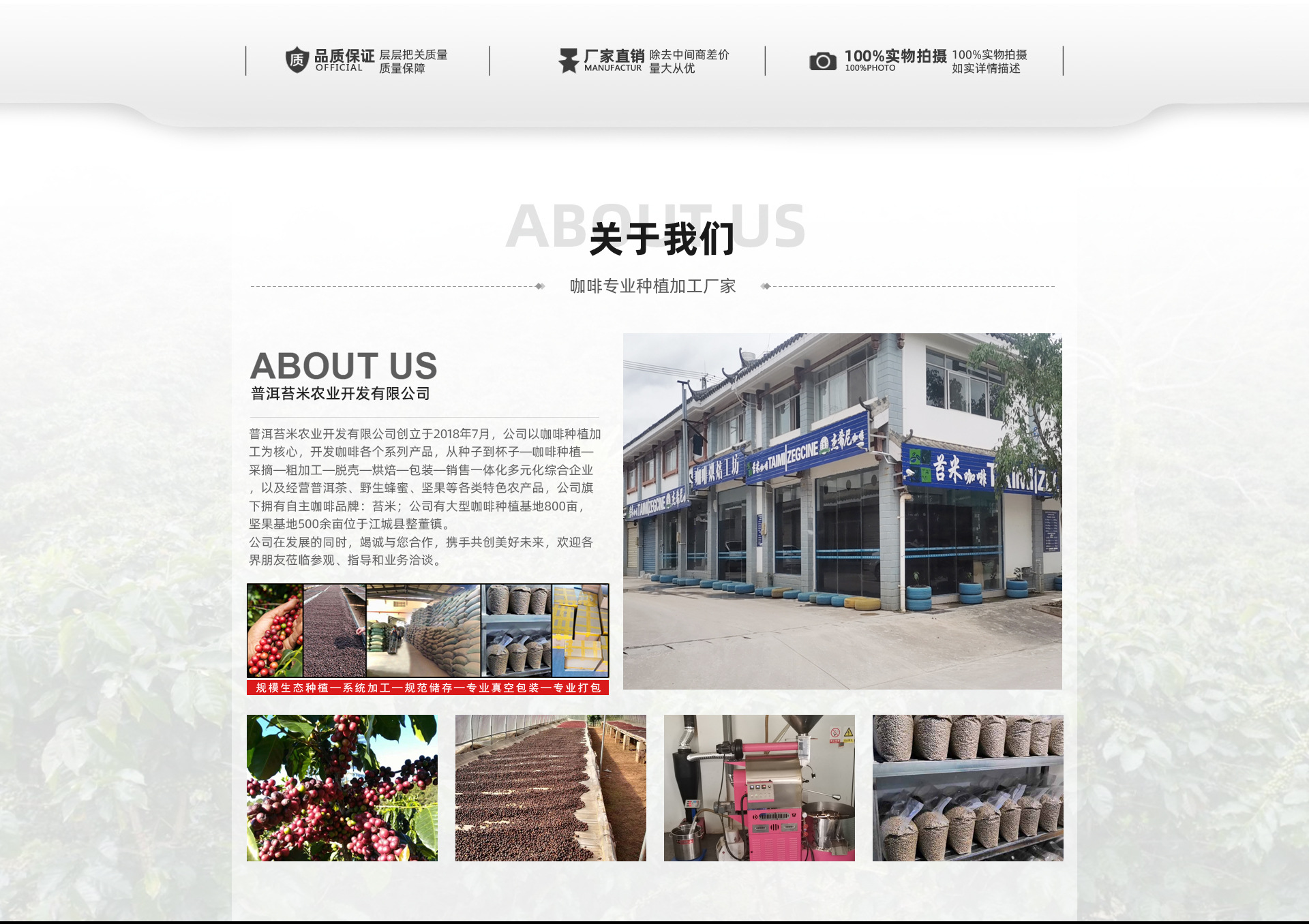 普洱苔米農業開發yxgs有限公司是一家從事咖啡原料加工和銷售于一體的咖啡公司