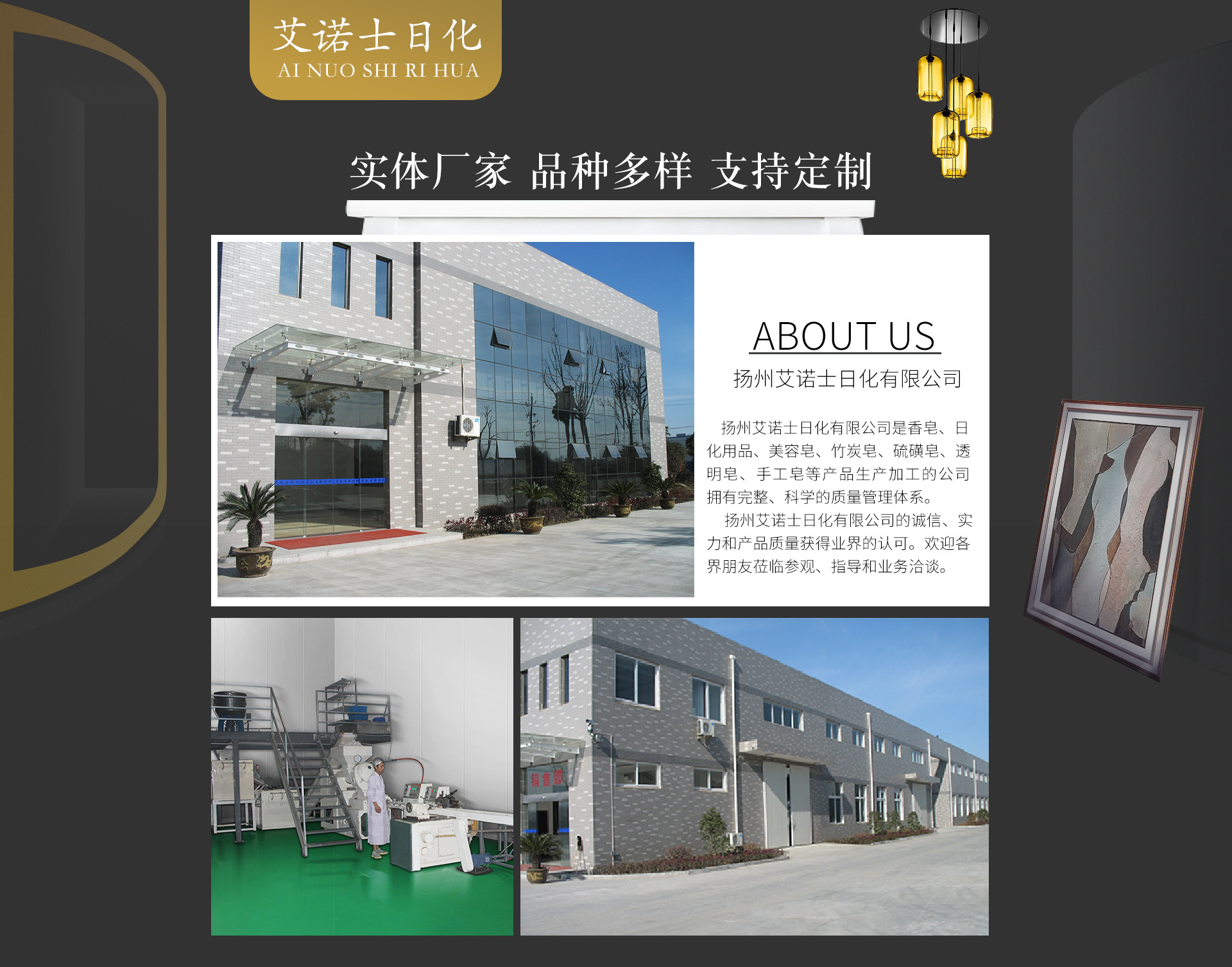 揚(yáng)州艾諾士日化有限公司是香皂、日化用品、美容皂、脂肪酸鈉、商超皂、竹炭皂、硫磺皂、透明皂、手工皂等產(chǎn)品專業(yè)生產(chǎn)加工的公司,擁有完整、科學(xué)的質(zhì)量管理體系。揚(yáng)州艾諾士日化有限公司的誠信、實(shí)力和產(chǎn)品質(zhì)量獲得業(yè)界的認(rèn)可。歡迎各界朋友蒞臨參觀、指導(dǎo)和業(yè)務(wù)洽談。