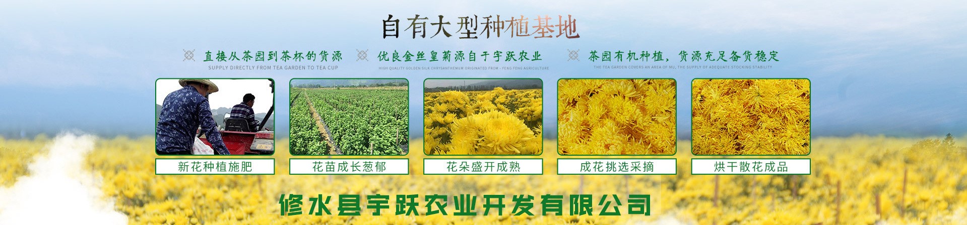 江西修水宇躍農(nóng)業(yè)開發(fā)有限公司是一家種植、加工,銷售為一體的農(nóng)業(yè)生產(chǎn)有限公司,面向大中城市提供金絲皇菊產(chǎn)品,秉著生態(tài)自然,質(zhì)量至上的原則,為廣大消費(fèi)者提供健康放心的花茶產(chǎn)品。