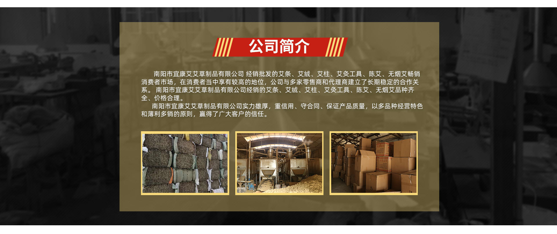 南陽宜康艾艾草制品有限公司是一家集艾草研發,生產,加工制作的自主生產型企業,艾草制品一體化的供應商。可承接OEM/ODM/OBM貼牌代工定制。我們主要經營艾艾貼、艾柱、艾條、艾絨、艾葉等艾草制品。采用南陽伏牛山深處野生艾草為原料,手工卷制,從原料到成品不添加任何化學物品,充分發揮艾葉之藥效。讓消費者用著更放心,宜康艾企業致力于弘揚艾灸文化,發揚中醫傳統文化,打造艾草精品品牌。