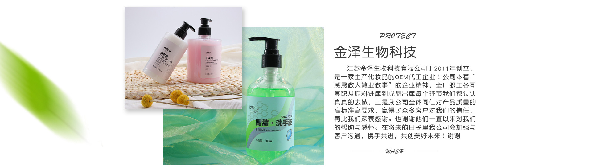 江蘇金澤生物科技有限公司于2011年創(chuàng)立,是一家專業(yè)生產(chǎn)化妝品的OEM代工企業(yè)!公司本著“感恩做人敬業(yè)做事”的企業(yè)精神,全廠職工各司其職從原料進庫到成品出庫每個環(huán)節(jié)我們都認認真真的去做,正是我公司全體同仁對產(chǎn)品質(zhì)量的高標準高要求,贏得了眾多客戶對我們的信任,再此我們深表感謝。也謝謝他們一直以來對我們的幫助與感懷。在將來的日子里我公司會加強與客戶溝通,攜手共進,共創(chuàng)美好未來!