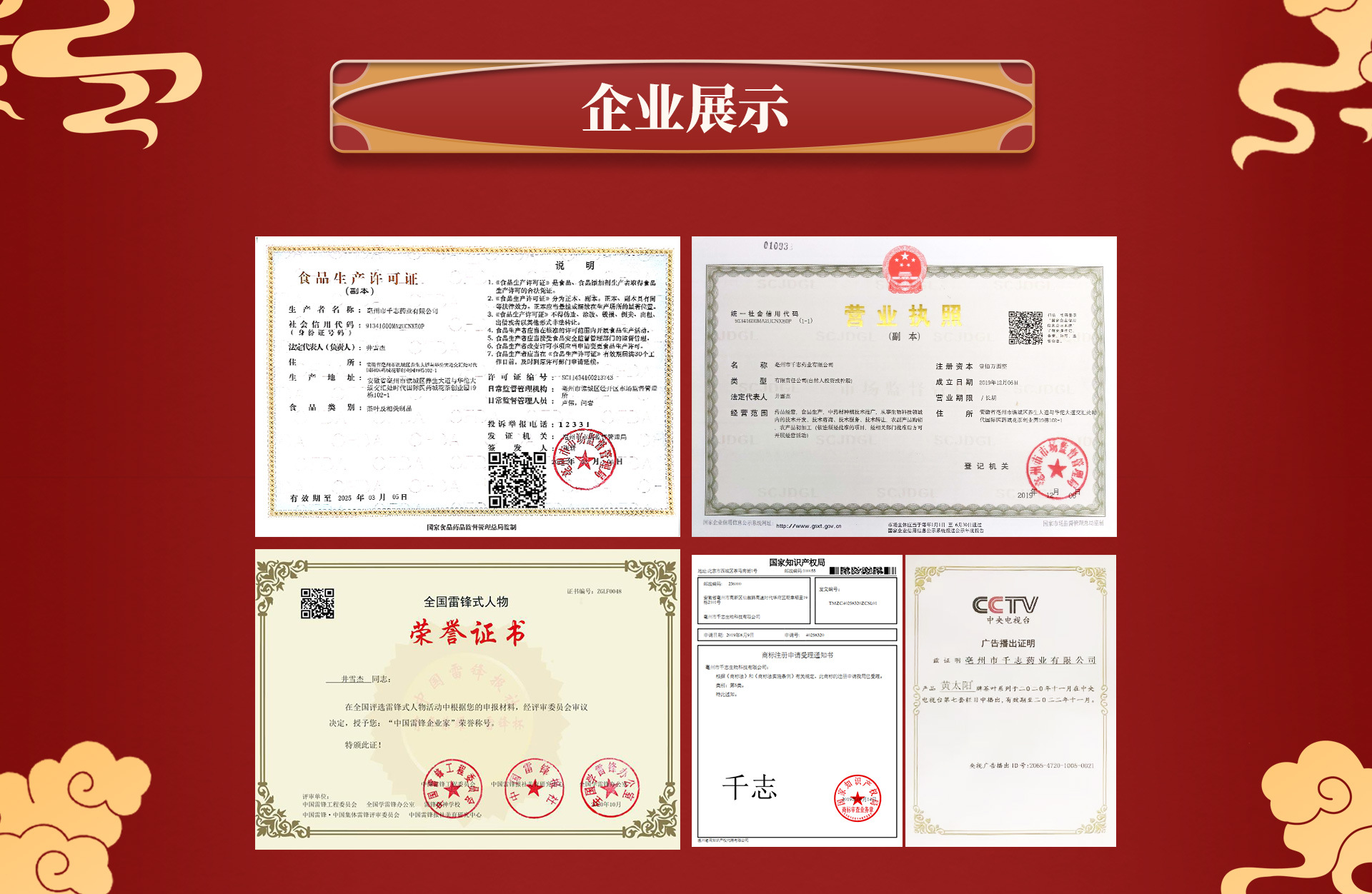 亳州市千志藥業有限公司坐落于安徽亳州譙城區,成立于2019年,本公司是一家致力于集科研開發、產品生產、物流配送、市場銷售為一體的,服務于全國客戶的公司。 公司主要經營范圍為:代用茶、含茶制品、固體飲料、方便食品、日化產品生產銷售等其他相關食品的生產銷售。