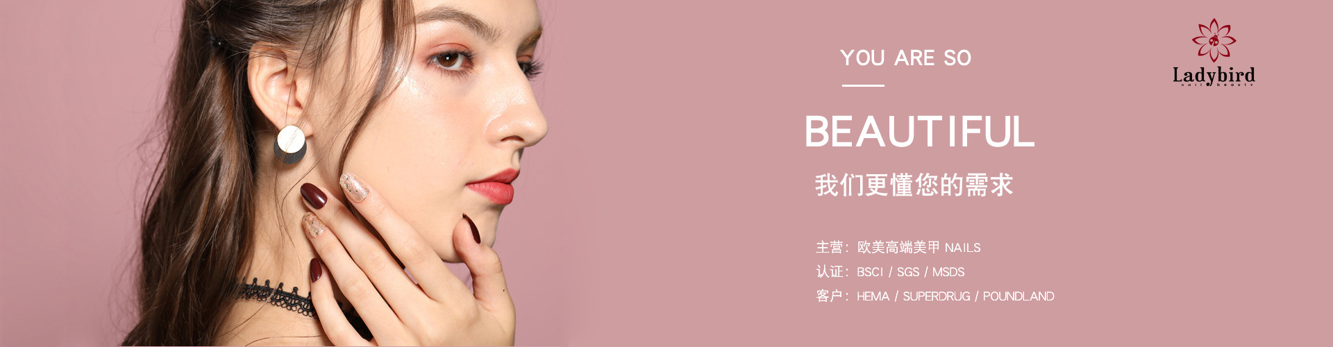東陽市白云小瓢蟲工藝品廠,位于浙江省東陽市西城工業區坐標性建筑內——希望大廈三樓,注冊資金1000,0000(壹仟萬元整)。公司主營甲片、美甲裝飾品、美容用品、美甲周邊產品、睫毛周邊產品與個人護理周邊產品等。 所有產品均達到歐盟化妝品行業標準,產品認證證書有:CQC、CNAS、 BSCI、 SGS等。 產品主要銷往歐美國市場,與AVON、Dollar Tree、Poundland、Superdrug 、Mascot、Justic、 Walgreen 、Hema和 Kmart等世界知名品牌建立了長期友好的合作關系。 我們的經營理念是“客戶的成功,我們的追求”,我們長期致力于幫助客戶建立他們自己的市場,達到廠家與銷售商雙贏的目的。我們將為您提供更優質的產品和服務,衷心希望您的加入!感恩一路有您的相伴,讓我們攜手邁進更輝煌的明天!