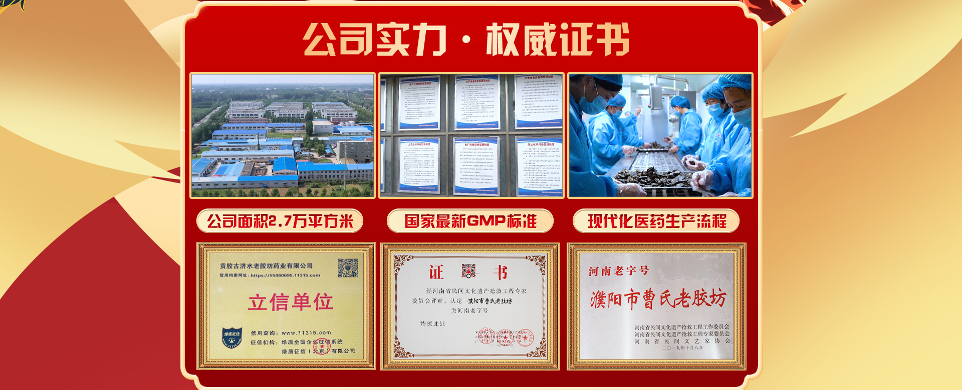 制膠世家,始于1876年,臺前縣隋朝貢膠藥業(yè)有限公司是阿膠、阿膠塊、阿膠糕、阿膠膏方、古法紅糖等產(chǎn)品專業(yè)生產(chǎn)加工的公司,擁有完整、科學(xué)的質(zhì)量管理體系。隋朝貢膠品牌產(chǎn)品源于1876年始,至今已有百年歷史,隋朝貢膠歷年來以甘肅、內(nèi)蒙、新疆等地的優(yōu)質(zhì)黑驢皮為原料,利用地下潛流之古濟水,在歷代傳統(tǒng)配方的基礎(chǔ)上加之冰糖、生地、人參、甘草、大棗、枸杞、珍貴中藥等佐料,精心熬制而成。隋朝貢膠至今已有300余年的的歷史,明代創(chuàng)始人曹振平、清代傳承人曹文彩,民國時期繼承人曹洪軍、新中國成立后繼承人曹先春、曹存立、曹之營等至今已有八代,其產(chǎn)品為古老的杏林奇葩!擁有非物質(zhì)文化遺產(chǎn),老字號等證書.臺前縣隋朝貢膠藥業(yè)有限公司的誠信、實力和產(chǎn)品質(zhì)量獲得業(yè)界的認(rèn)可。歡迎各界朋友蒞臨參觀、指導(dǎo)和業(yè)務(wù)洽談。