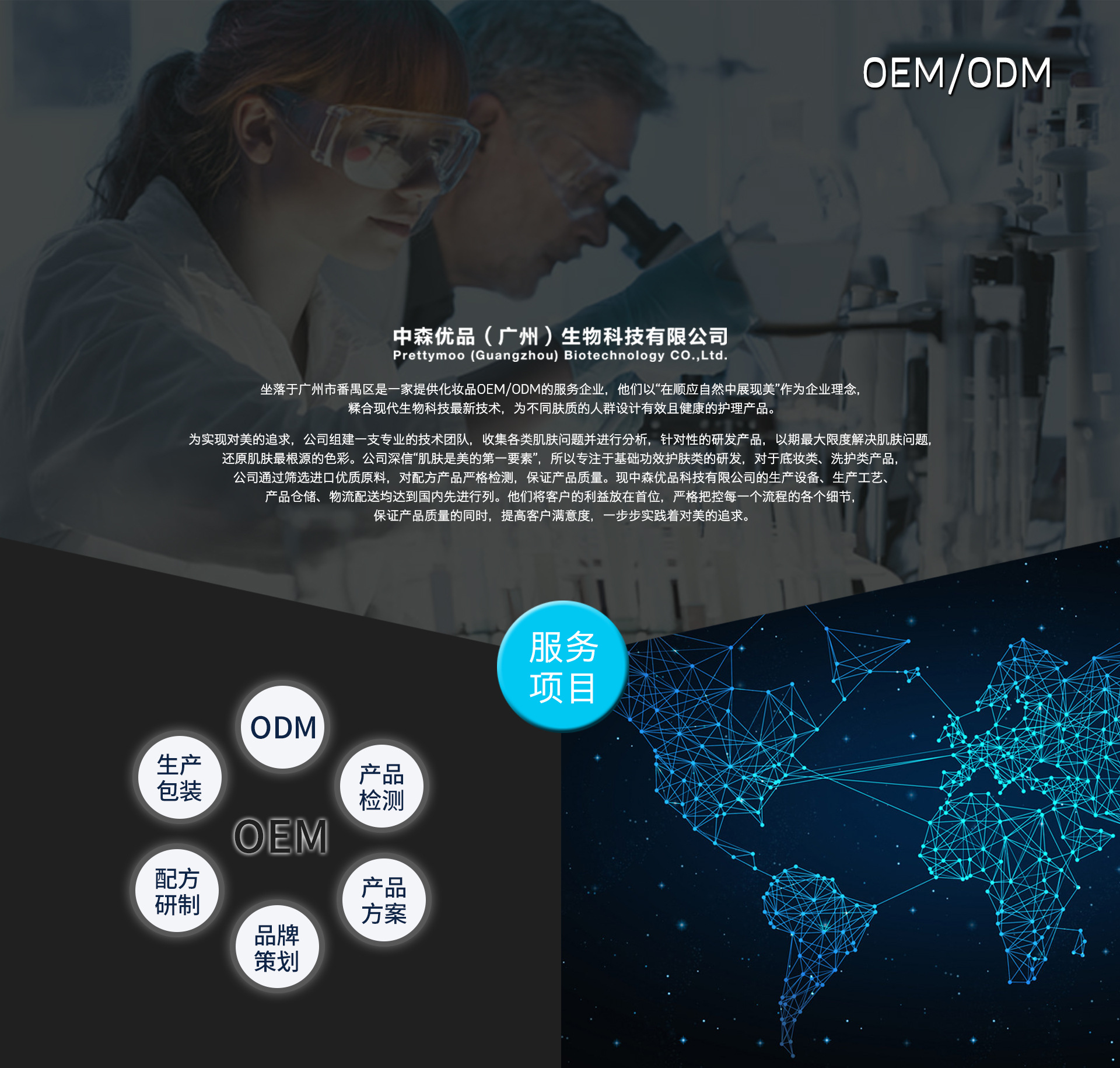 中森優(yōu)品(廣州)生物科技有限公司, 坐落于中國美妝一線都會——廣州。 這里匯集了 優(yōu)秀的行業(yè)人才, 優(yōu)質(zhì)的生產(chǎn)設(shè)備, 優(yōu)先的科研技術(shù)。 業(yè)務(wù)涵括個(gè)人護(hù)理品全品類, OEM即優(yōu)品生產(chǎn),ODM即優(yōu)品研發(fā)。 來自科技的首度引用權(quán),原料的進(jìn)口優(yōu)先權(quán), 中森量身定制你的專屬優(yōu)品。