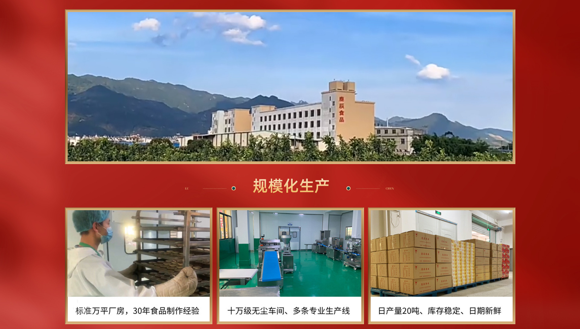 【服務優勢】200千克起訂,低門檻貼牌代工。極速需求服務響應,歡迎實地或視頻看廠。 【主要產品】麻棗、仙豆糕(綠豆餅)、白皮餅、蜜柚餅、爆漿曲奇、百香果干、蜜柚果干等 【工廠實力】自建12000平工廠,擁有膨化類、烘烤類糕點、蒸煮類糕點、果干類,以及餅餡料等5個品類的生產許可和生產線,證件資質齊全。有多個電商、商超渠道品牌的貼牌代工經驗 【工廠簡介】福建鹿辰食品有限公司位于生態環境優美的蜜柚之鄉——漳州平和,是一家集研發、生產、銷售為一體的綜合型食品制造企業。已有30年食品制作經驗,線下覆蓋福建多地流通市場及商超。麻棗、枕頭餅、蜜柚餅、仙豆糕等明星產品,特色明顯,市場差異化競爭優勢大。同時公司秉持創新精神,不斷挖掘生產有市場潛力的傳統特色糕點和休閑零食,以滿足快速變化的市場需求。