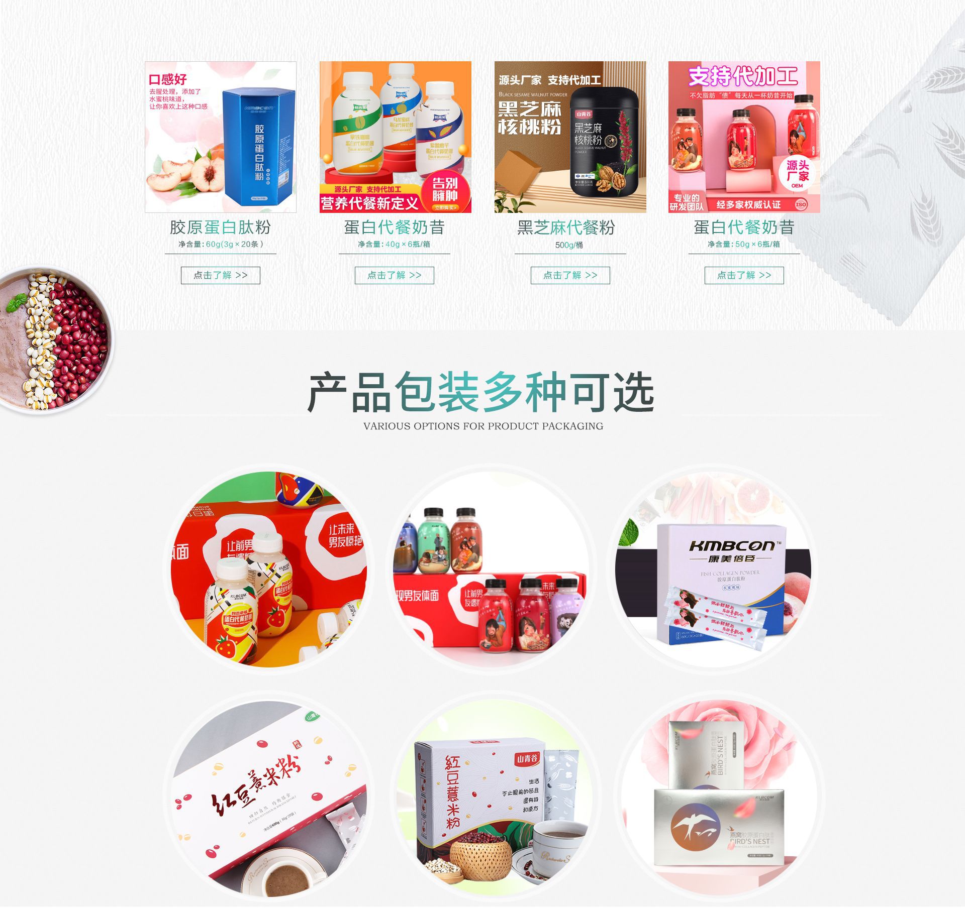 山東健欣養生食品有限公司是一家專業生產研發代餐粉、代餐奶昔、五谷粉、膠原蛋白、普通膳食營養補充劑、復合益生菌、sc營養食品的公司,目前有六條瓶裝全自動生產線,四條全自動袋裝生產線,工廠實力雄厚,研發能力強大,生產效率高,歡迎來廠洽談業務!