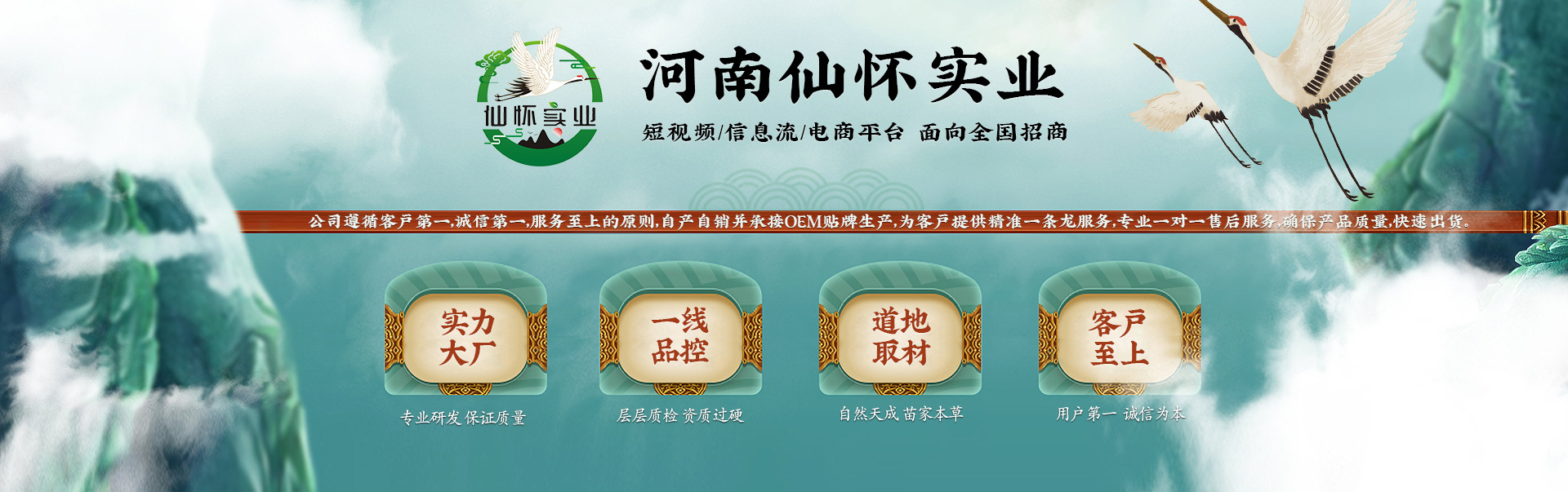 河南仙懷實業有限公司是一家集水劑、噴劑、洗液、乳膏、乳液、凝膠、精油、粉劑、貼膏、日化、保健用品、艾制品等數十條生產線,涵蓋產品設計、研發、生產、經營為一體的現代化科技型企業,公司位于伏牛山以南,漢水以北的-河南鎮平縣,獨特的地理位置及伏牛山豐富的動植物資源為公司產品提供了優良的原材料保障,占地面積10萬平方,1000萬投資規模,擁有2500平10萬級靜化車間,300平實驗室,800平辦公面積,1000平原材料倉庫,5000平成品倉儲,專業的科研團隊及100名以上員工。由六位創始人聯合創辦,每位創始人均在健康行業經營超過十年以上,擁有成熟的設計、研發、采購、生產、銷售、售后、行政、運營等體系。 公司遵循客戶第一,誠信第一,服務至上的原則,自產自銷并承接OEM貼牌生產,為客戶提供精準一條龍服務,專業一對一售后服務,確保產品質量,快速出貨。歡迎各界朋友蒞臨參觀、指導和業務洽談。