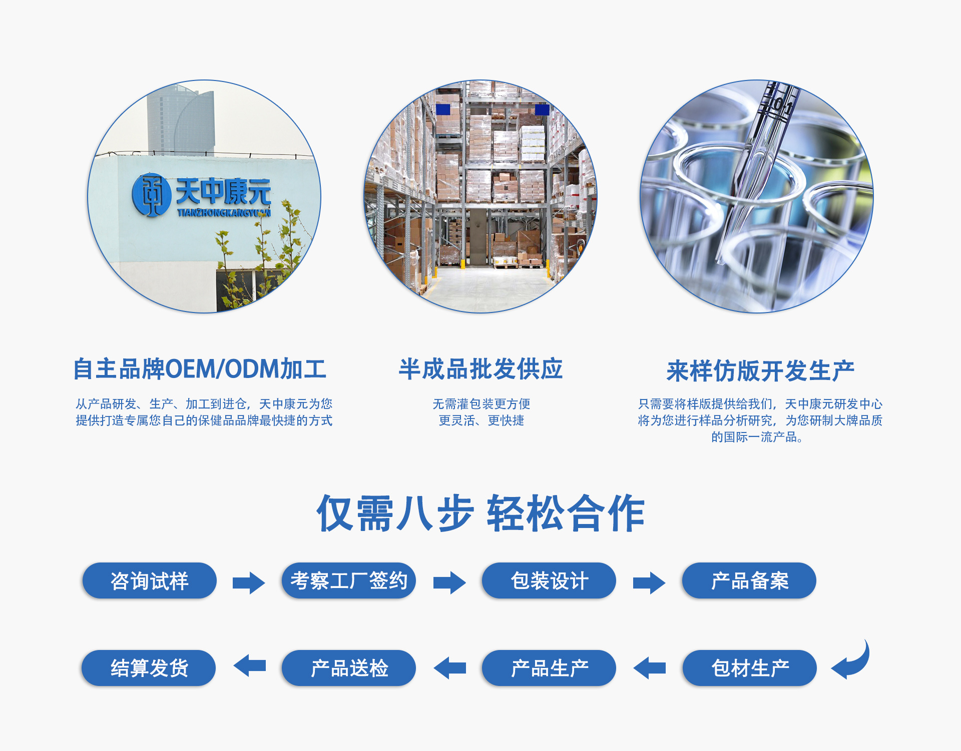 天中康元藥業集團有限公司是集研發、生產、銷售于一體的高科技、綜合性集團企業,公司旗下營養健康研究院聯合多家高校專家教授,針對各類人群研發保健品、功能性食品成果顯著,轉化成果專利十三項,擁有200多項產品并可根據客戶需求進行研發生產,集團擁有占地面積16000平米的GMP十萬級凈化車間、擁有片劑、粉劑、茶劑、固體飲料、壓片糖果、保健食品、特膳運動食品等多種生產線,并通過ISO22000食品安全管理體系認證、HACCP 食品安全體系認證、企業誠信管理體系認證、五星級商品售后服務認證,為客戶提供最優質的產品和服務。公司秉承“誠信立企 德行天下”的企業文化,為傳承和發揚中醫藥文化、改善全民健康,成為大健康行業的領跑者而不懈努力!