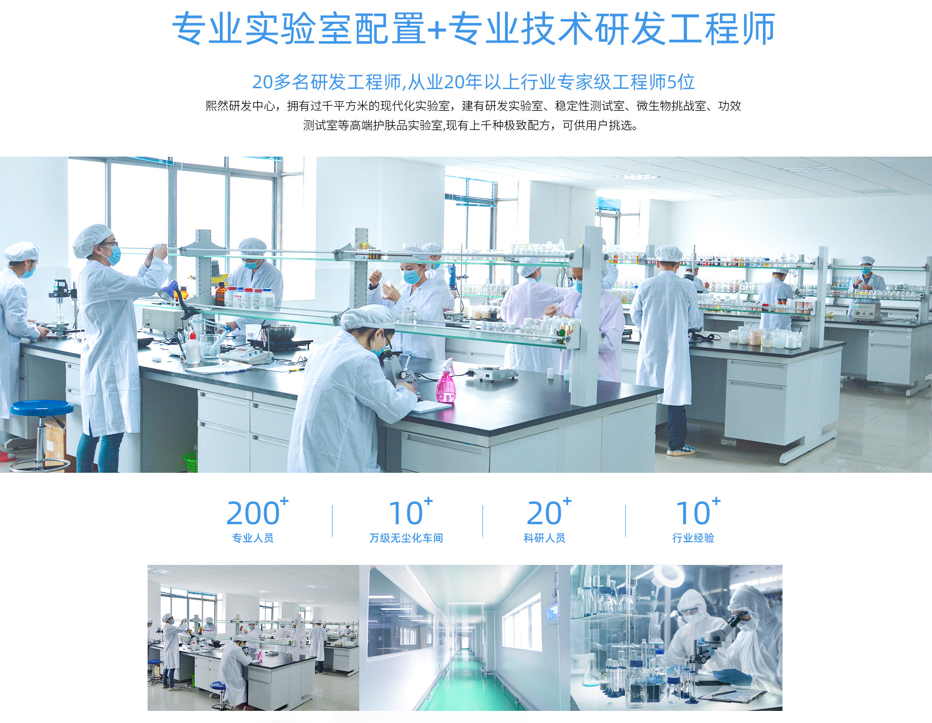 廣州熙然化妝品公司,成立于2013年,致力于面部修護類護膚品的生產加工oem定制。廠房面積從2000平方到如今的20000平方米,科研人員從5人到如今的20人,及緊密與國內外科研機構合作開發新的修護配方。加工產品涵蓋護膚品全線,洗護系列產品全線。歡迎國內電商,微商,線下品牌,美容院線等客戶前來咨詢加工合作。