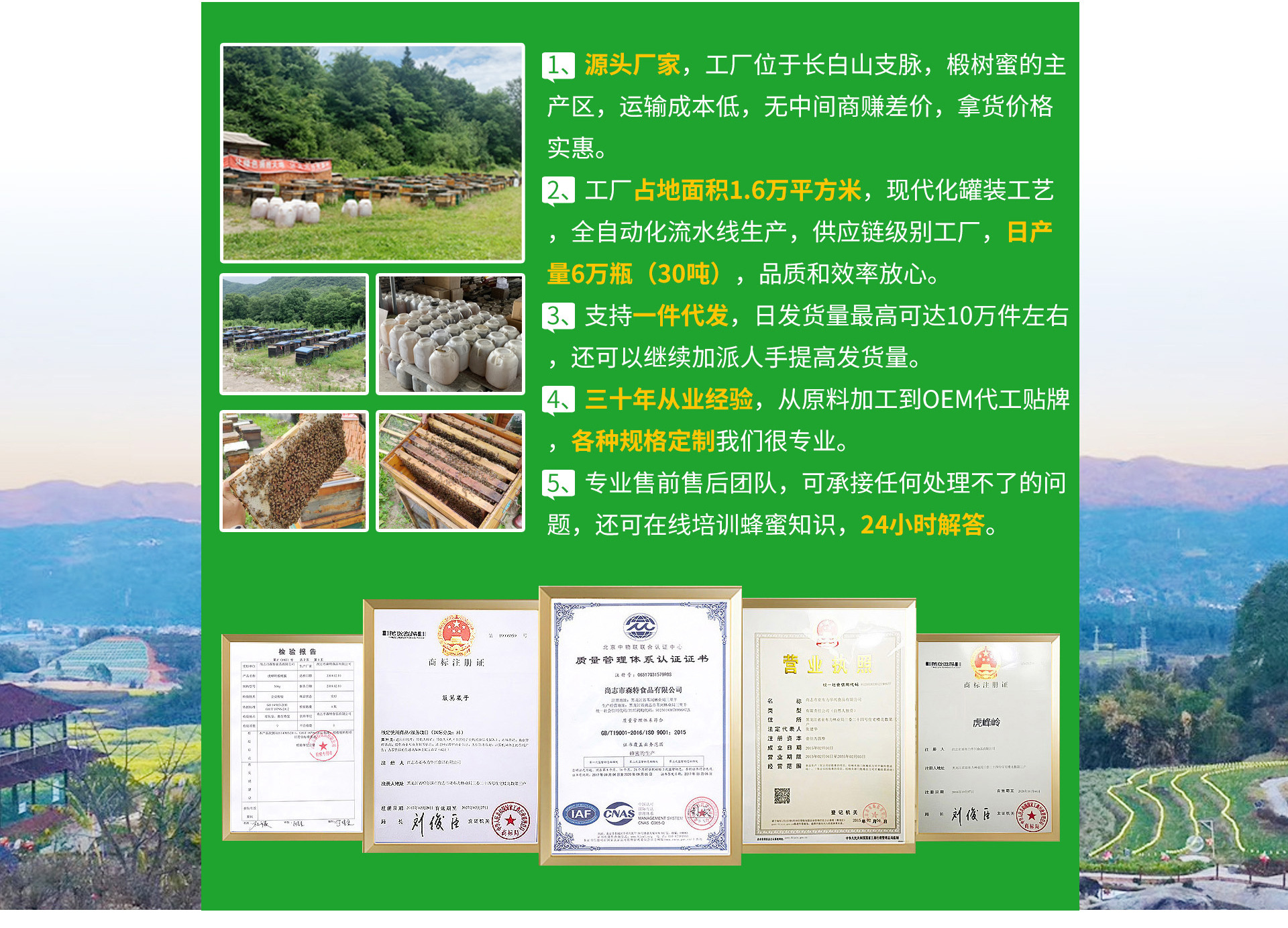 企業(yè)簡介:尚志市亞布力華興食品有限公司成立于2015年,自成立以來公司秉承健康食品,綠色食品的宗旨,并且一直作為公司的發(fā)展方向。現(xiàn)公司的業(yè)務(wù)為東北全品類特產(chǎn),主要支柱業(yè)務(wù)為蜂產(chǎn)品! 業(yè)務(wù)概全:公司全年收購加工蜂蜜500t+,蜂王漿5t,花粉20t;包裝100余種;小包裝從10g到2500g,大包!裝25kg到85kg!覆蓋全品類的oem,代工,貼牌,滿足各類定制! 線下覆蓋各類生活超市:老太平超市,家得樂超市,華悅等連鎖超市,并且游走于各大展銷會。線上覆蓋各類平臺:阿里,淘寶,京東,等等,并且于2018完成企業(yè)方向業(yè)務(wù)轉(zhuǎn)型,由批發(fā)型企業(yè)轉(zhuǎn)變成源頭工廠企業(yè),由BTC到BTB. 企業(yè)展望:公司計劃在2019年500w投資進行產(chǎn)品線的升級,重點推進其他特產(chǎn)項目的進行,帶動當(dāng)?shù)亟?jīng)濟,帶動困難戶,打造當(dāng)?shù)佚堫^食品企業(yè)