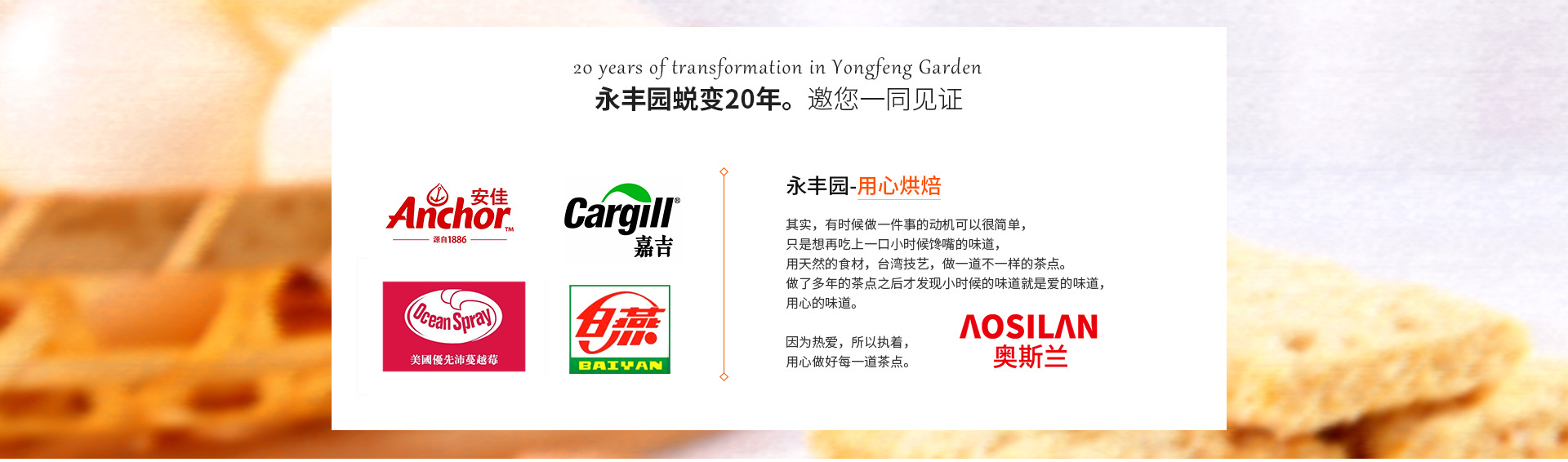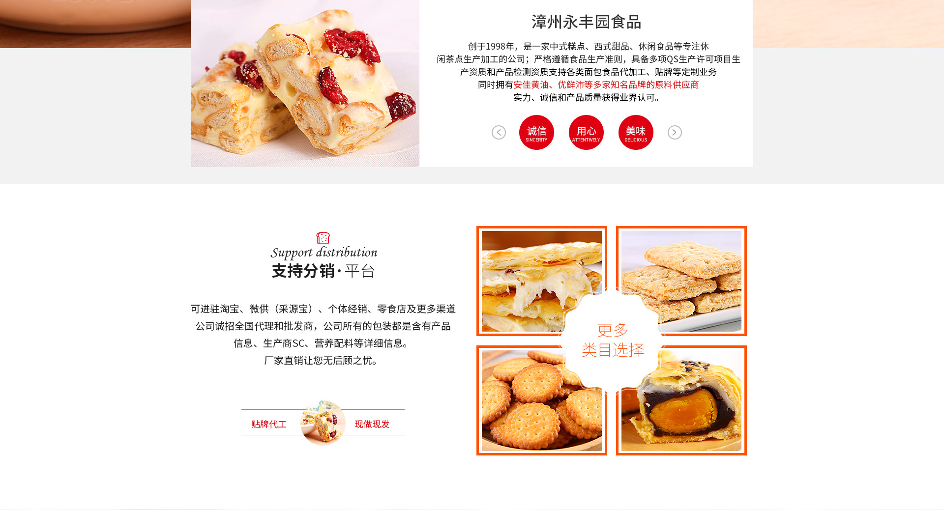 漳州永豐園食品創(chuàng)立于2005年,位于美麗的僑鄉(xiāng)福建漳州閩星生態(tài)園項(xiàng)目區(qū),擁有自己的研發(fā)中心,把傳統(tǒng)的加工工藝和現(xiàn)代加工技術(shù)相結(jié)合,致力于研發(fā)/生產(chǎn)優(yōu)質(zhì)茶點(diǎn),以包容兼并的態(tài)度,為廣大的消費(fèi)者提供健康、美味、營(yíng)養(yǎng)的食品。公司提倡以人為本,專(zhuān)注無(wú)添加、少添加、低甜低油等健康食品的研發(fā),以市場(chǎng)驅(qū)動(dòng)為導(dǎo)向,靈活調(diào)整產(chǎn)品策略,竭誠(chéng)服務(wù)于廣大客戶(hù)朋友。公司具備多項(xiàng)SC生產(chǎn)許可項(xiàng)目生產(chǎn)資質(zhì),擁有完整、科學(xué)的質(zhì)量管理體系。漳州永豐園食品有限公司以誠(chéng)信經(jīng)營(yíng)和產(chǎn)品質(zhì)量獲得業(yè)界的認(rèn)可。歡迎各界朋友蒞臨參觀、指導(dǎo)和業(yè)務(wù)洽談。