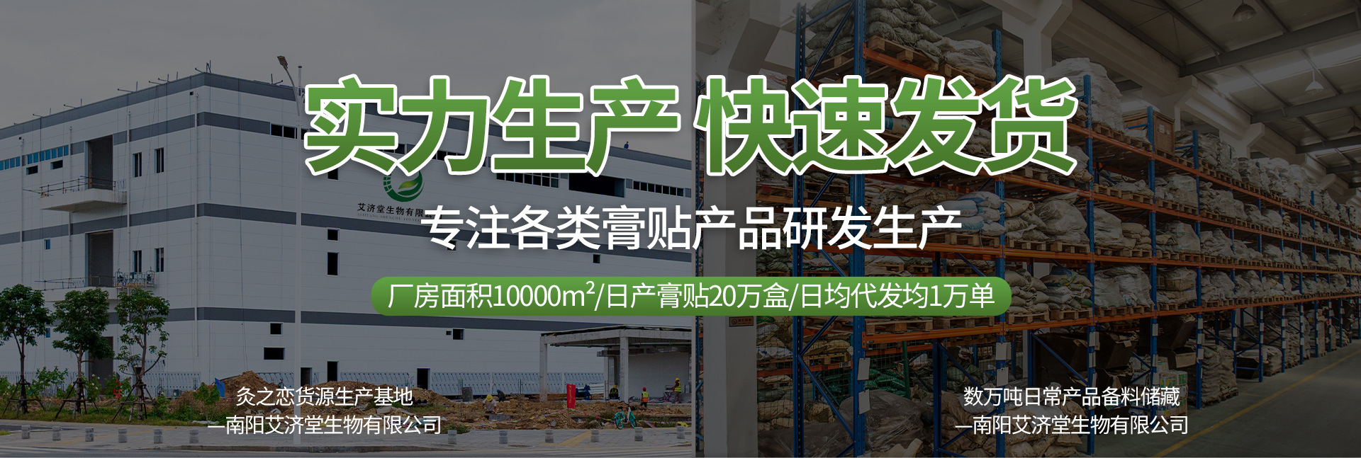 艾濟堂生物有限公司成立于2016年10月20日。本公司致力于膏藥貼劑、外用軟膏、乳膏,筋骨冷敷凝膠、噴劑的生產加工,經過4年的努力與發展,已具一定的規模及實力,已形成了集研發、生產、銷售為一體的專業化、現代化的公司團體。旗下擁有多個電商平臺,及多家品牌合作商,可針對電商客戶提供產品定制服務,目前僅電商客戶銷量已達3000余萬。 在醫圣故鄉南陽建立了以健康養生的外用貼劑為核心的艾草制品生產基地,旗下品牌“灸之戀”包括以肚臍貼、艾草足貼、頸椎貼、膝蓋貼、艾草足浴包、小兒蜜制貼為基礎的系列產品群。各類醫用冷敷貼、小兒貼、穴位貼、艾灸貼、三伏貼、暖宮貼、痛經貼、乳腺貼、戒煙貼、失眠貼、磁灸熱貼、隔物灸、磁療貼、中藥粉包、眼貼、足貼、透皮貼、三九貼等等,均可按要求定制。