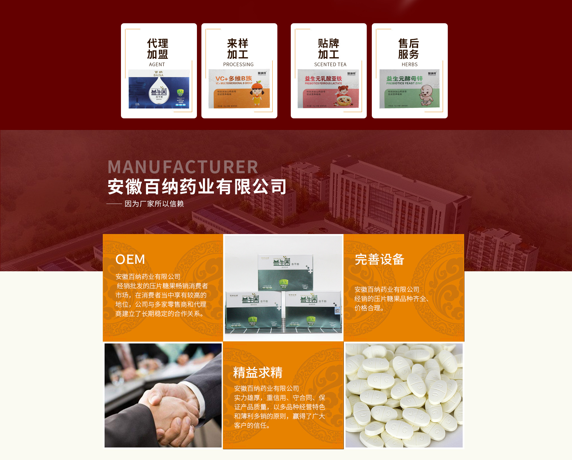 安徽百納藥業有限公司我公司具體地址位于太和縣三角元工業園B區,歡迎各位新老客戶來我公司參觀指導工作,我們主要經營地產中藥材、糖果制品、飲料、花茶、花果茶、塑料制品、農副產品加工、分裝、銷售。(依法須經批準的項目,經相關部門批準后方可開展經營活動),并以共贏、開創經營理念,以全新的管理模式和周到的服務,用心服務于客戶,安徽百納藥業有限公司是集固體飲料、壓片糖果、咀嚼片、等各類粉劑、片劑食品、預包裝食品與開發、生產、銷售于一體。公司擁有一支訓練有素的生產、技術、經營、管理人員組成的團隊,公司重視新產品開發,以道法自然的健康理念為基礎,公司堅持規范化管理,制訂科學的管理規章制度,嚴抓企業內部管理,,狠抓源頭采購、嚴控入庫管理,一直到成品出廠實施全過程管理,從而確保了產品質量。更可接洽來自于全國各地的加工生產定制訂單,和代理加盟商家。歡迎來電咨詢!