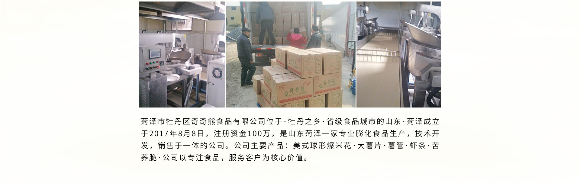 菏澤市奇奇熊食品有限公司 菏澤市奇奇熊食品有限公司是一家專注于膨化食品研發,生產,銷售,服務,一體的生產廠家。本著互惠共贏的合作理念,廣交四海合作伙伴,潛心學習百家所長,專注服務眾商家。