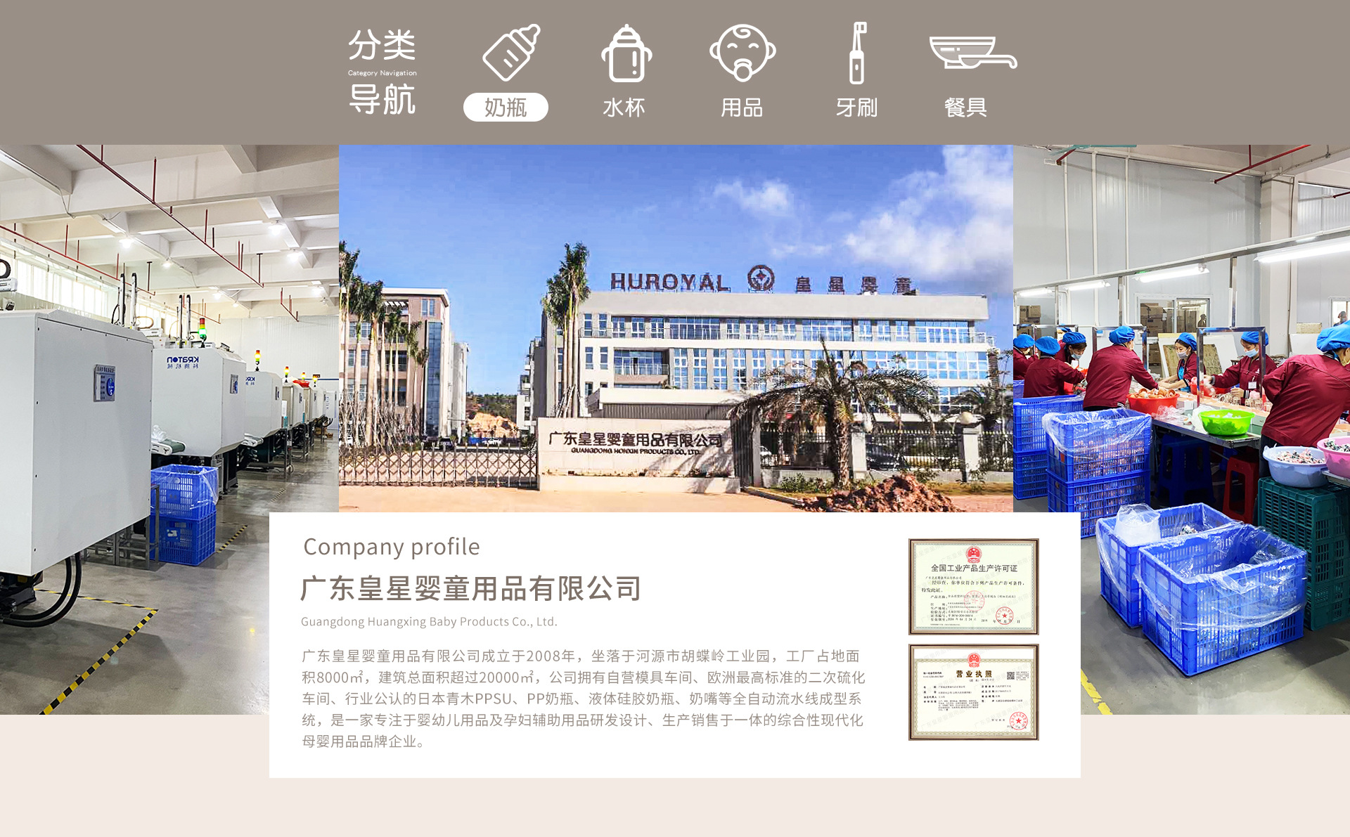 中國廣州皇星嬰童用品有限公司成立于2008年,坐落于廣州市蝴蝶嶺工業(yè)園,工廠占地面積8000m2,建筑總面積超過20000m2,公司擁有自營模具車間、歐洲最高標(biāo)準(zhǔn)的二次硫化車間、行業(yè)公認(rèn)的日本青木PPSU、PP奶瓶、液體硅膠奶瓶、奶嘴等全自動流水線成型系統(tǒng),是一家專注于嬰幼兒用品及孕婦輔助用品研發(fā)設(shè)計、生產(chǎn)銷售于一體的綜合性現(xiàn)代化母嬰用品品牌企業(yè)。