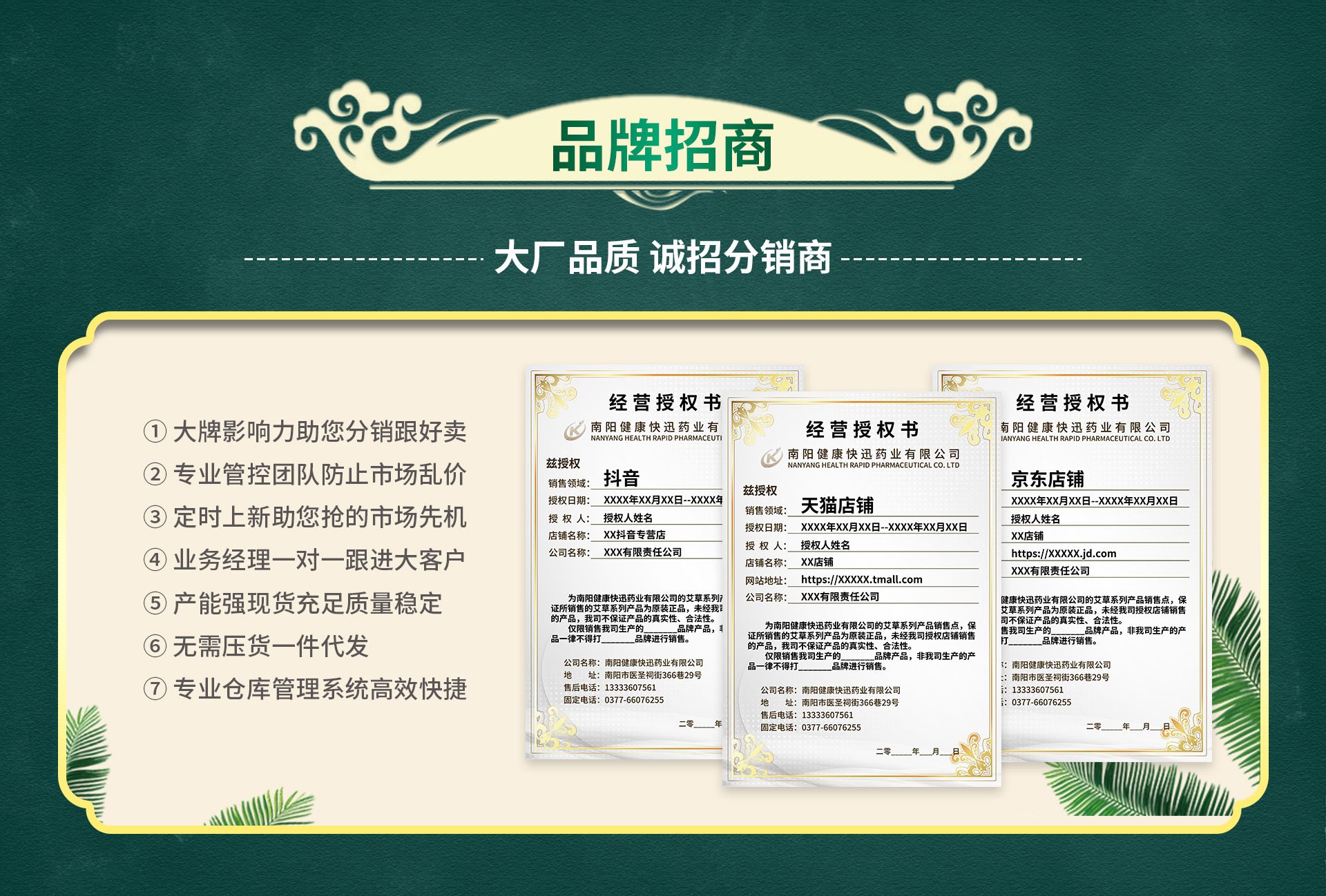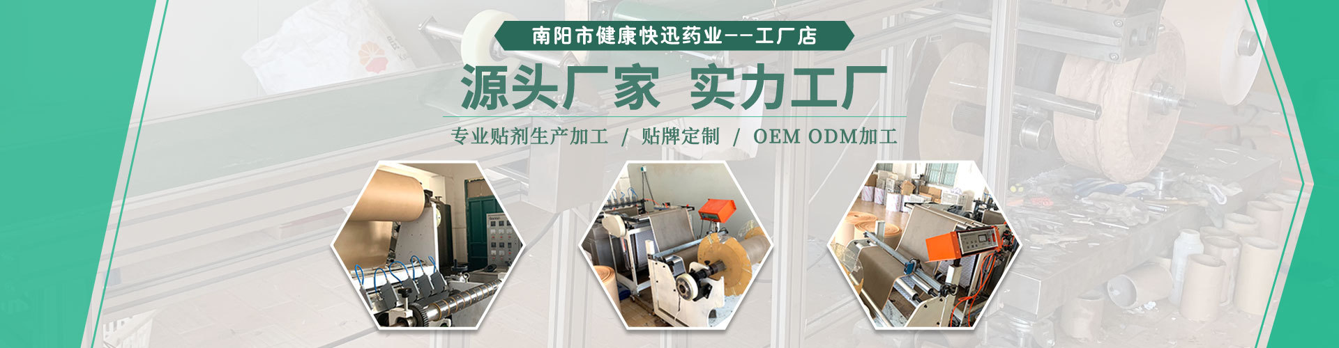 南陽市健康快迅藥業有限公司是外用貼劑產品專業生產加工企業,公司擁有完整、科學的質量管理體系。公司擁有大型反應釜、涂布機、切片機、分切機、灌裝機數十套,日產外用貼膏百萬片,公司現有健字批準文號、第三方檢測報告等滿足各種平臺用戶貼牌代加工需求!南陽市健康快迅藥業有限公司的誠信、實力和產品質量獲得業界的認可。歡迎各界朋友蒞臨參觀、指導和業務洽談