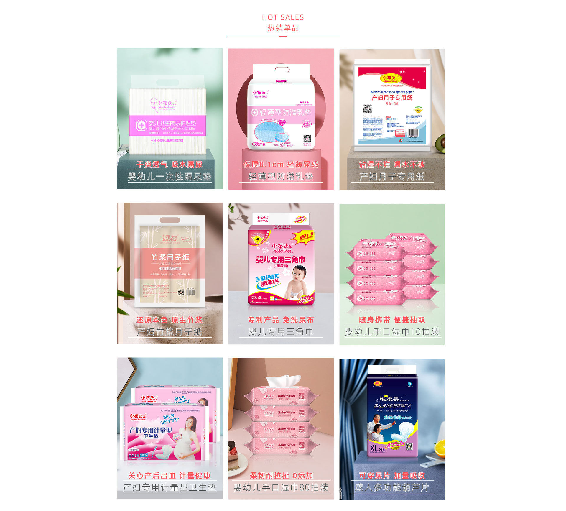 石家莊小布頭兒紙業有限公司是一家專業研制、生產、銷售孕產婦、嬰幼兒及成人衛生護理用品的專業公司,公司長期以來致力于孕產婦和嬰幼兒及成人衛生用品護理產品的研制和開發,擁有符合國家衛生標準的大型無塵車間生產基地,廠區占地30于畝,生產車間面積2萬平方米,各類設備30多臺,依靠國際先進技術設備和一流人才,為市場提供多品種,高要求的婦嬰、成人衛生用品護理健康用品。目前已開發五大系列:嬰幼兒衛生用品護理系列、孕產婦衛生用品護理系列、成人衛生用品護理護理系列、濕巾衛生紙系列、洗護系列一百余款單品,產品暢銷國內市場。