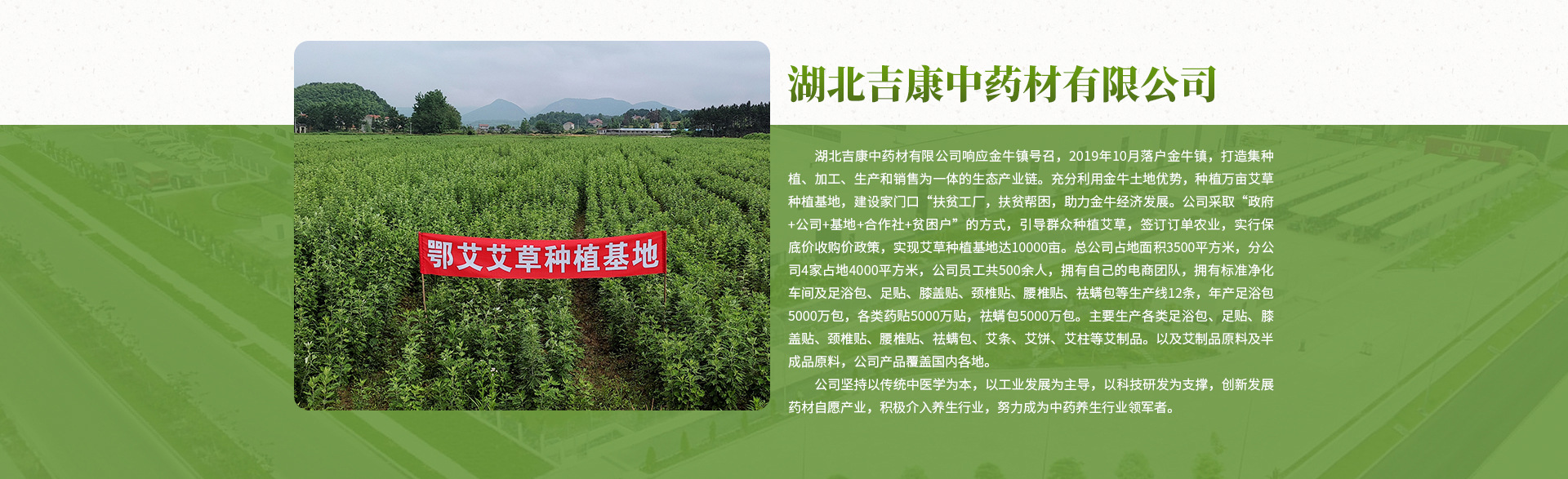 湖北吉康中藥材有限公司坐落于全國重點鎮--金牛鎮,被稱為“五縣通衢”,境內的鄂王城是湖北省簡稱“鄂”的源頭,其歷史源遠流長。本公司是一家集原材料種植、加工、生產和銷售為一體,承接OEM/ODM/OBM貼牌、代工、定制的大型生產企業。擁有完整的、科學的質量管理體系。