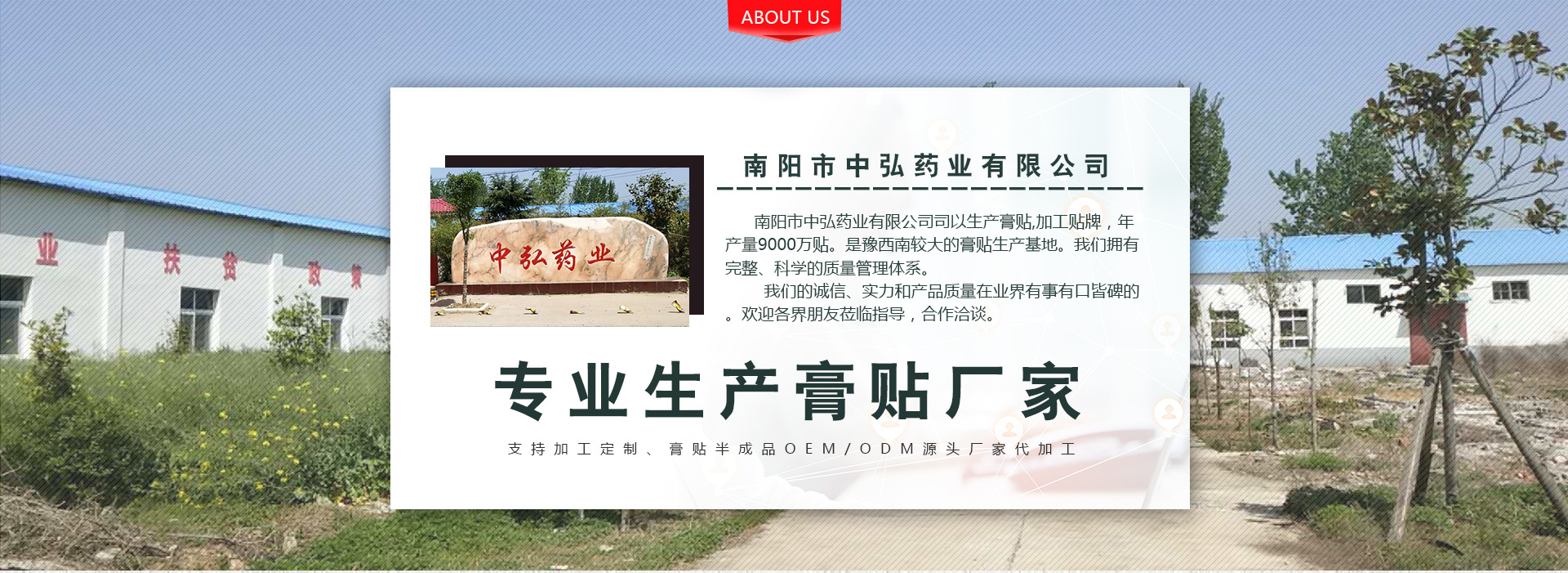 南陽市中弘藥業(yè)有限公司位于南陽市宛城區(qū)高廟鄉(xiāng)牛高路朱莊,成立于2011年11月,是專業(yè)一類醫(yī)療器械,艾草深加工、代用茶,足浴粉OEM加工廠,集研發(fā)、生產銷售為一體,注冊資本500萬元,經營范圍:專業(yè)黑膏藥,艾草制品,巴布貼,腹瀉貼,退熱貼,暈車貼,肛泰貼,各種規(guī)格代用茶,足浴粉,足浴鹽加工。我公司總占地面積20多畝,主要用于修建研究室,實驗室,十萬級的凈化生產車間,倉庫,辦公室。為保持旺盛的生命力我公司建有專業(yè)的研究室,留樣室并與著名的院校進行長期技術合作 ,開發(fā)先進產品。同時,我公司還配備有數(shù)臺先進的生產設備和檢測設備。公司成立至今,始終堅持以其先進的技術要求以及對質量的保證,現(xiàn)已擁有員工60人包括資深工程師,專業(yè)的操作人員,優(yōu)秀的檢測人員以及包裝人員。目前我公司已具備完整的生產模式和銷售模式,以及完善的售后服務,公司的銷售模式以線上線下為主,主要面向全國市場,業(yè)務覆蓋面積廣。