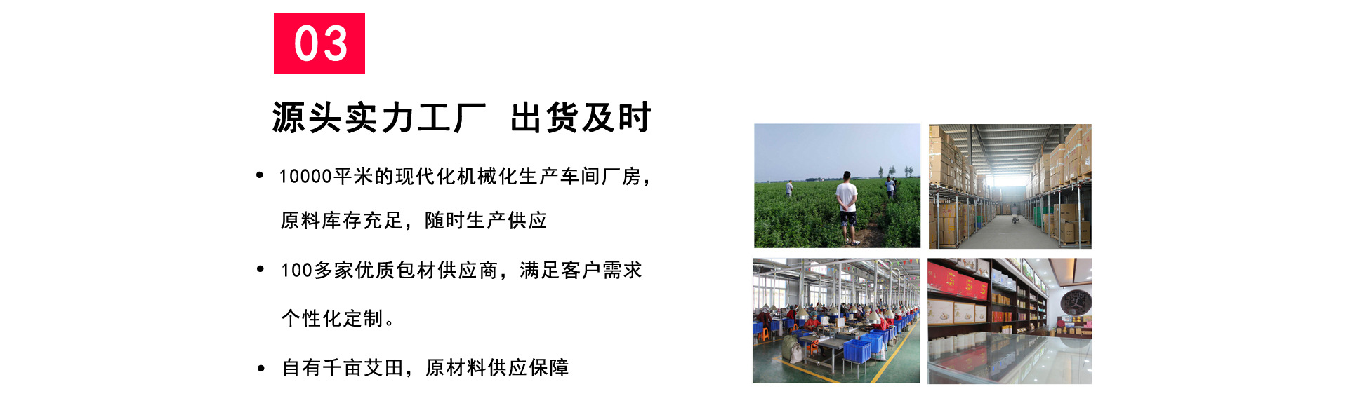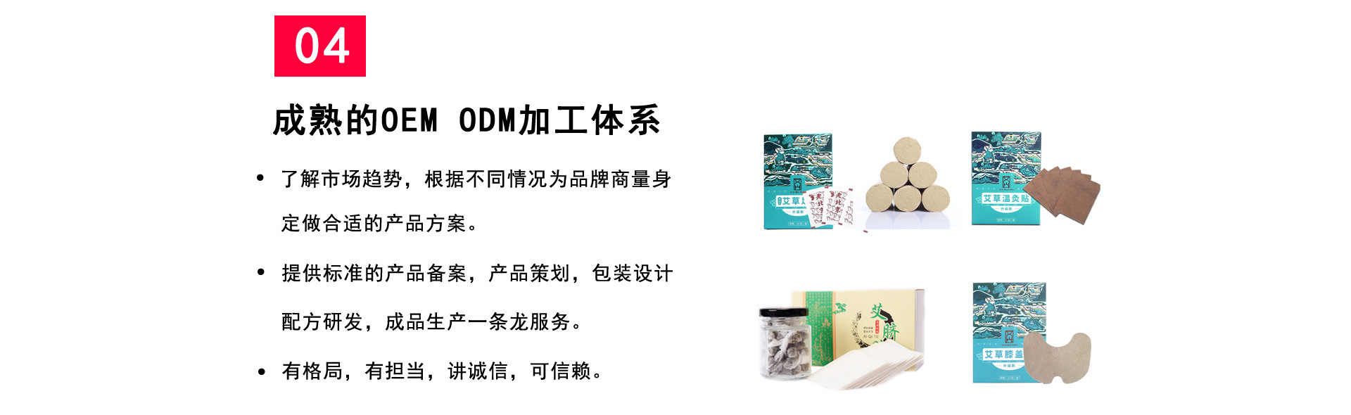 南陽市艾興堂艾草制品有限公司是?家專業從事艾草種植、產品研 發、艾絨原材料加?、艾條?產、艾灸類器具貼劑粉劑研制開發、艾條批發、艾 柱、艾餅、艾條OEN定制、?產、制造、線上線下艾草制品的OEM加?、 貼牌加?、定制加?等、經營貿易,以及艾灸診療與教學研究為?體的多 功能、復合式、專業化企業。 現公司擁有兩個野?艾草直供基地,?個?型?塵艾絨提取?間,數 萬平專業艾草陳放倉庫,?個?動化艾條卷制?間,并有肩頸貼膝蓋貼等貼劑 產包裝?間、肚臍貼藥丸產?間產品?產制造基地,以及強?的營銷? 絡、完善的終端連鎖服務體系。