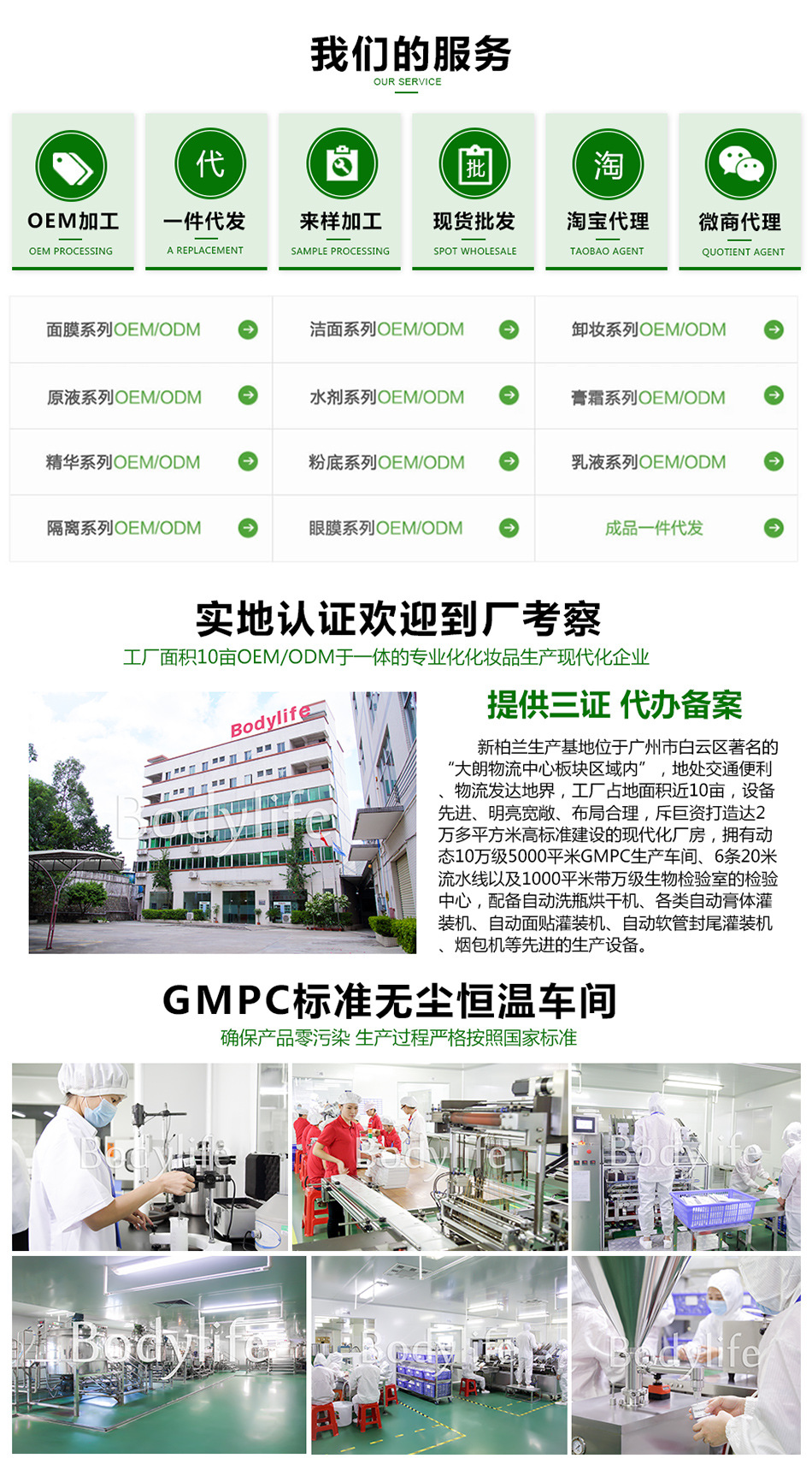廣州市新柏蘭生物制品有限公司,行內(nèi)簡(jiǎn)稱“新柏蘭”,是一家承接‘全球化妝品OEM/ODM代工’行業(yè)資深企業(yè)。 “新柏蘭”現(xiàn)隸屬美國(guó)Bodylife集團(tuán)公司麾下企業(yè),Bodylife起源于英皇室,以護(hù)膚宮廷秘方流傳于世界各地。 2002年Bodylife經(jīng)新加坡轉(zhuǎn)至中國(guó)廣州設(shè)立生產(chǎn)基地,這便是‘新柏蘭’的誕生。 工廠從設(shè)立之初就十分注重產(chǎn)品品質(zhì)和國(guó)外化妝品新技術(shù)的引進(jìn)和轉(zhuǎn)化工作,同時(shí)工廠本身也設(shè)立大型化妝品研發(fā)室,積極探索推進(jìn)在天然植物化妝品的研發(fā),碩果累累。