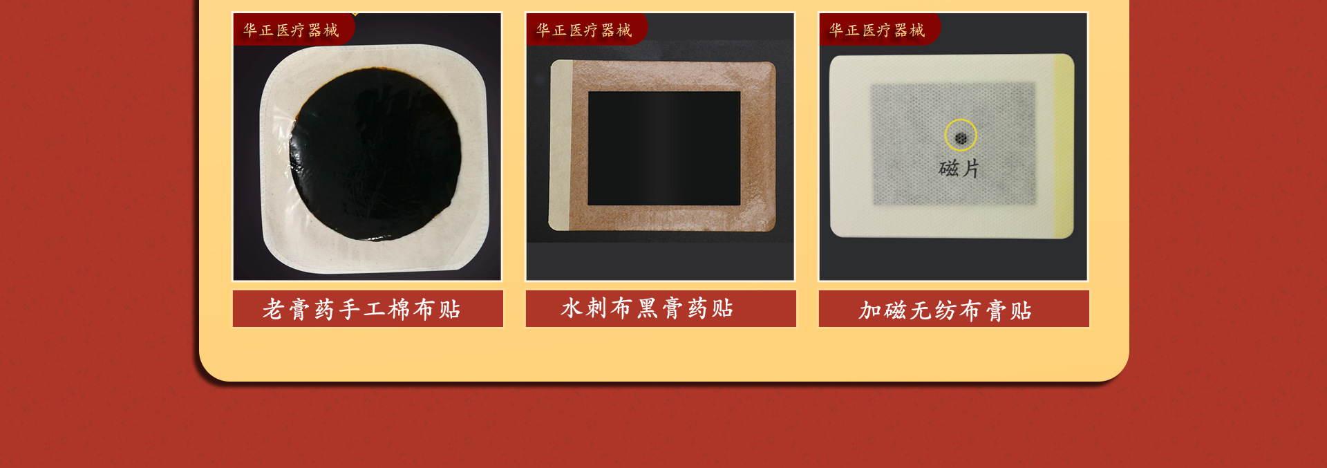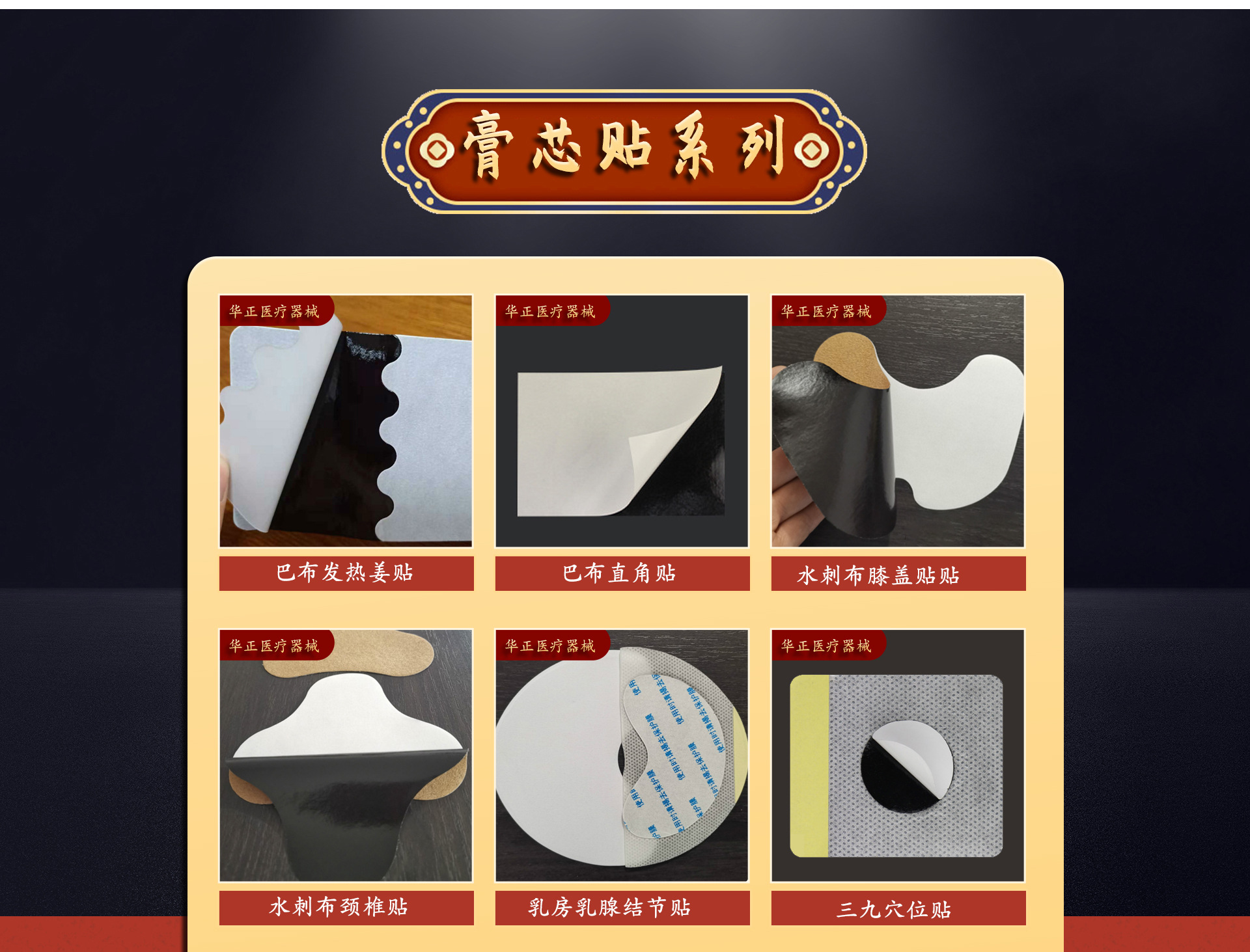 鎮平縣華正醫療器械有限公司是專業一類二類醫療器械OEM加工廠,本公司專業致力于外用貼劑、醫療器械研發、生產和銷售為一體的現代化企業。本公司本著“質量是企業的生命”的經營宗旨。集結了一批優秀的研發、生產、經營管理人才,建立靈活、高效的企業運營機制。在確保所有原料地道的同事,引進國內外最先進的工業設備,精心配制。具有雄厚的技術力量,完善的質量管理體系,加上合理的價格、優秀的服務、競爭力強的產品,使公司產品備受廣大消費者的信任和青睞,銷售網絡遍布全國。本公司擁有大型噴涂機、刮涂機、裁切機、真空攪拌機等膏藥貼劑制作設備,可加工生產各種規格劑型的黑膏藥系列、紅膏藥系列、綠膏藥系列、巴布貼系列、水凝膠系列、腹瀉貼、退熱貼、睡眠貼、暈車貼、瘦身貼、前列腺貼、咳喘貼、雞眼貼等等歡迎各大連鎖藥房、醫藥公司(醫藥診所、按摩店)、OEM貼牌生產.
